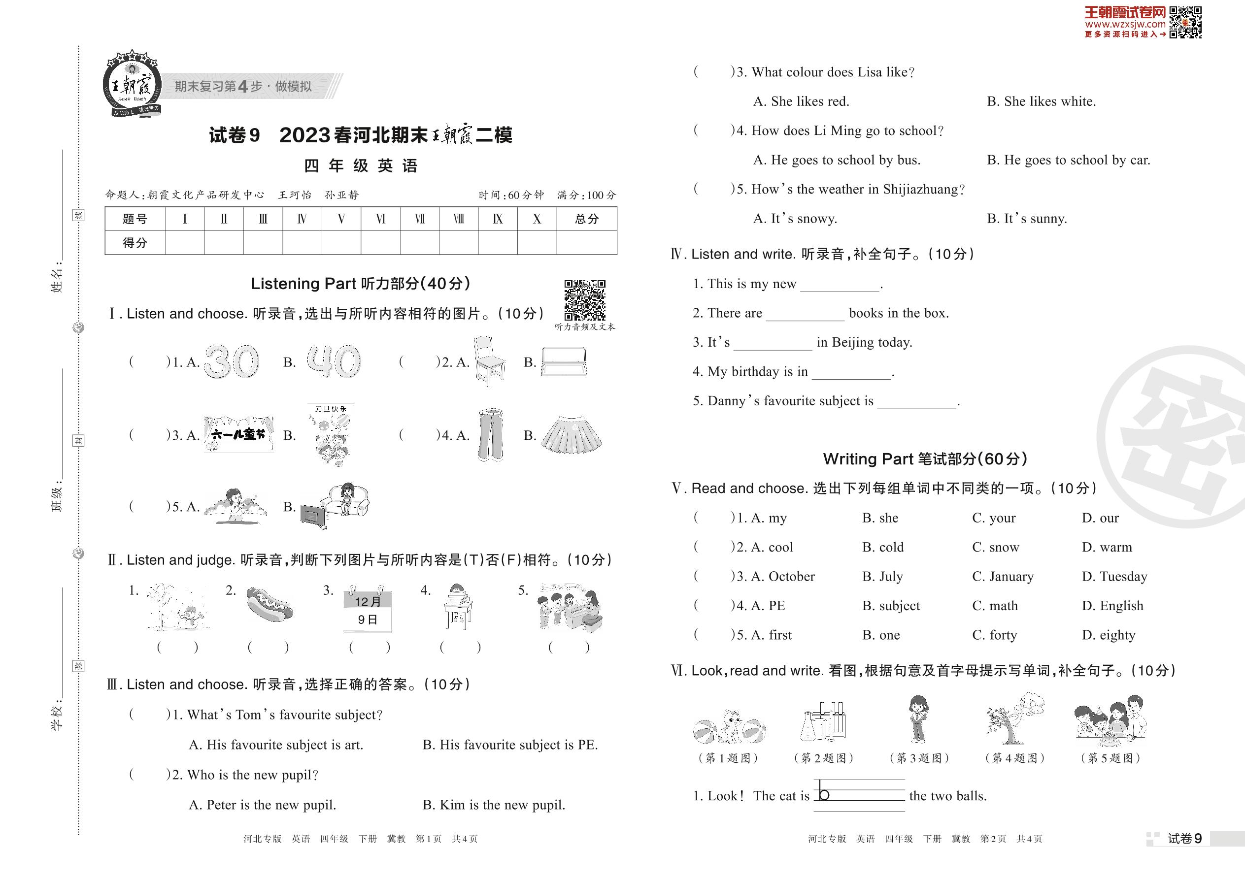 王朝霞期末模拟卷四年级下册英语(冀教版)_R230419155251820【9】