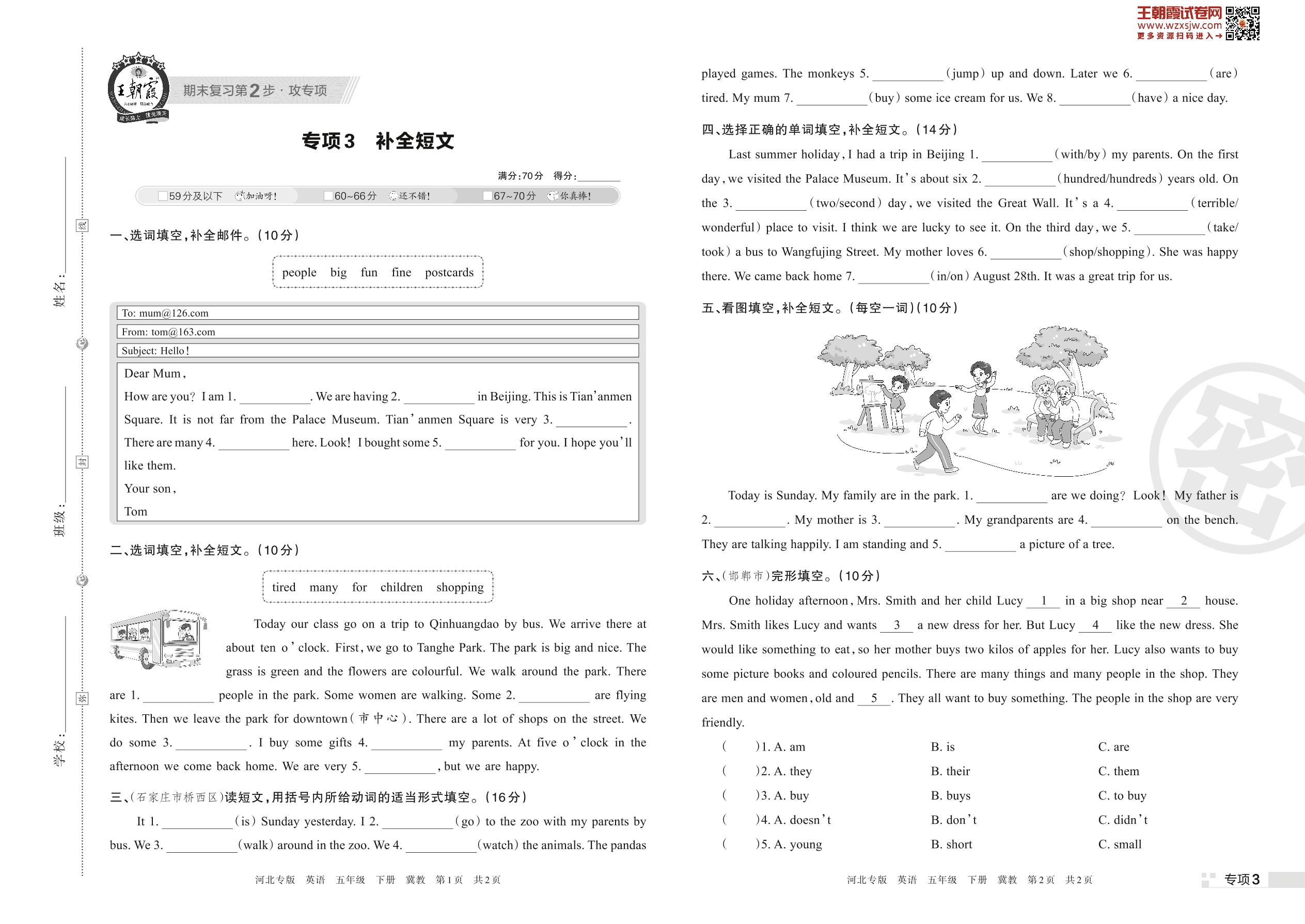 王朝霞期末专项卷——补全短文五年级下册英语(冀教版)_R230419155742454【3】