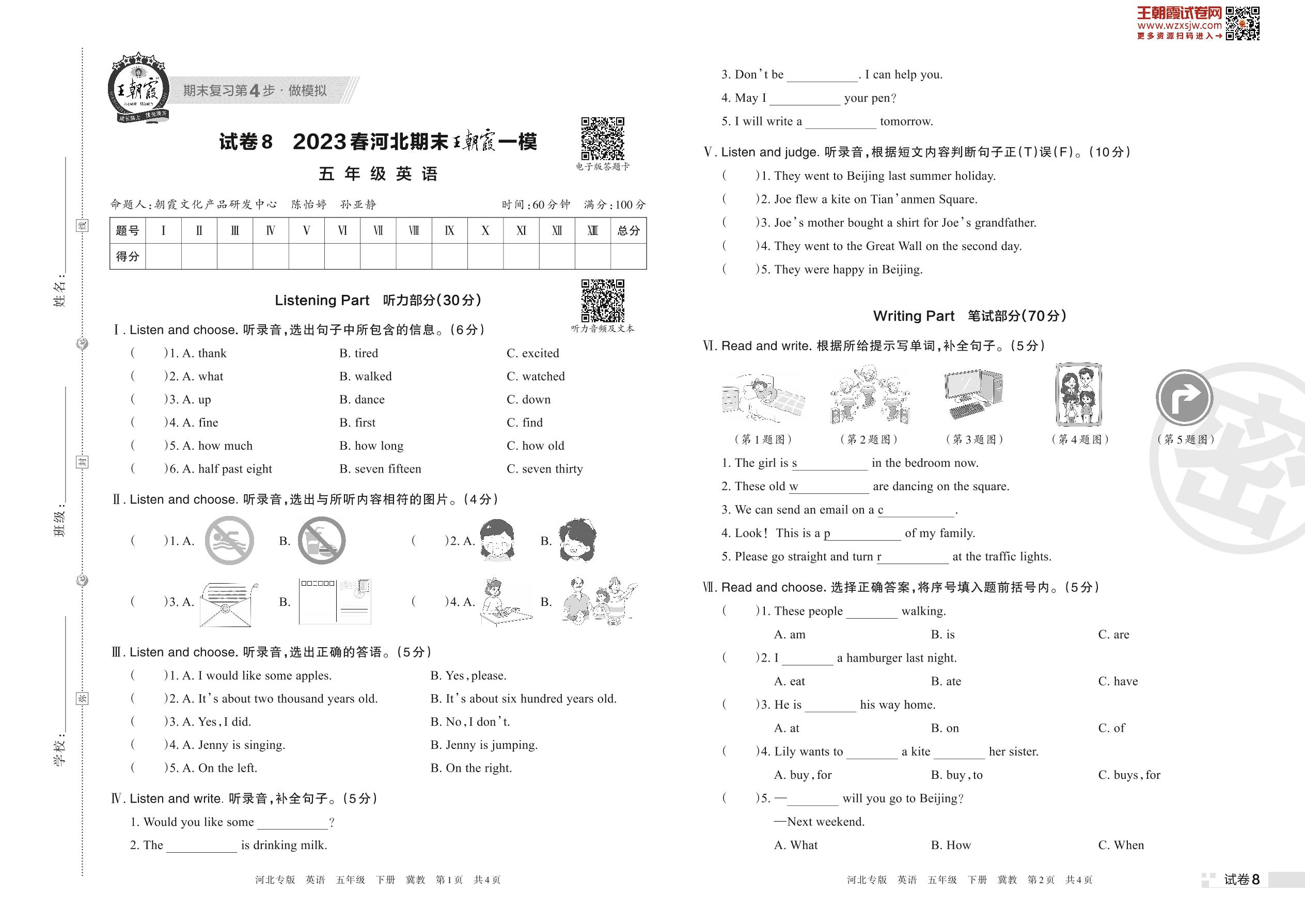王朝霞期末模拟卷五年级下册英语(冀教版)_R230419155743136【8】