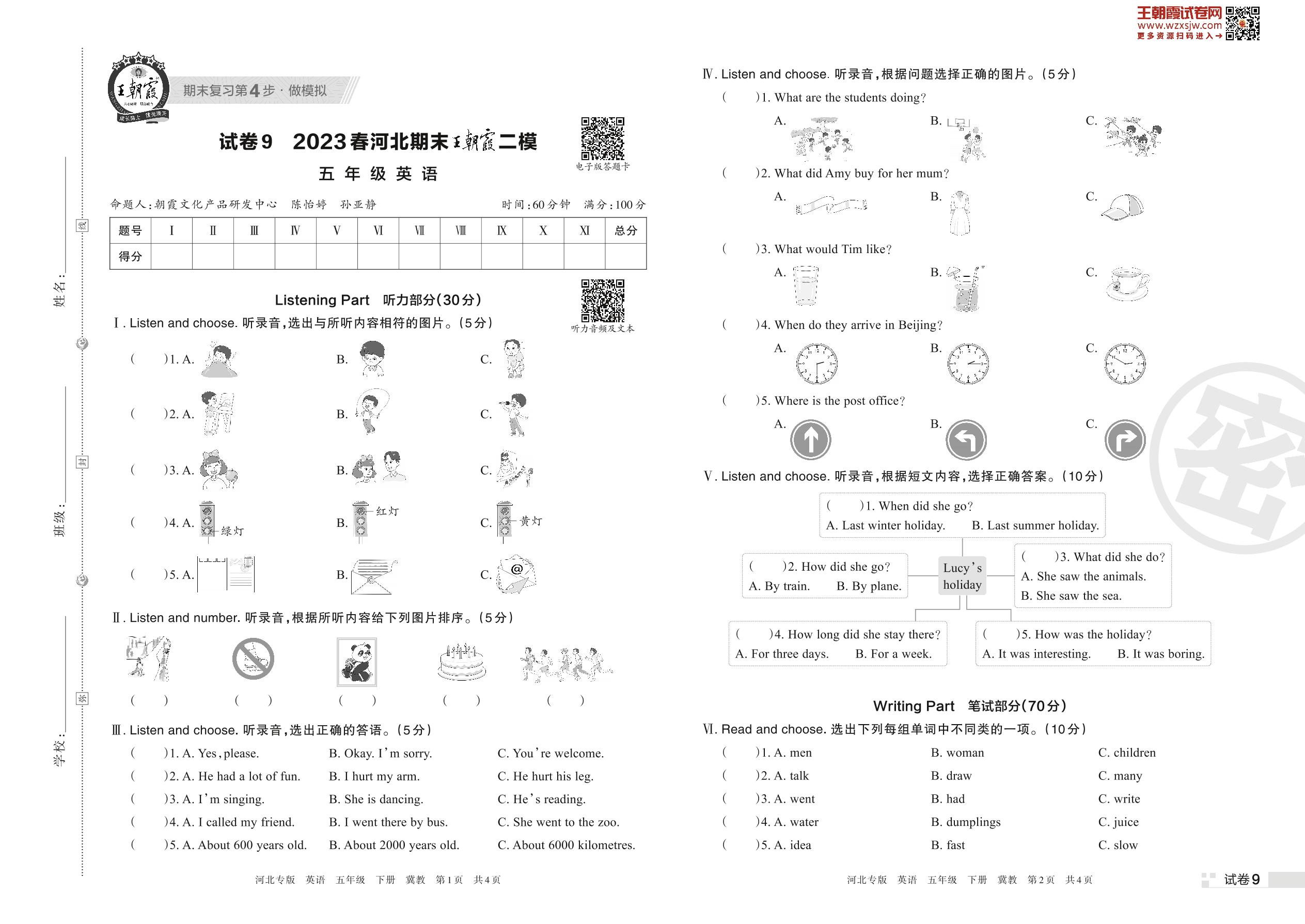王朝霞期末模拟卷五年级下册英语(冀教版)_R230419155743520【9】