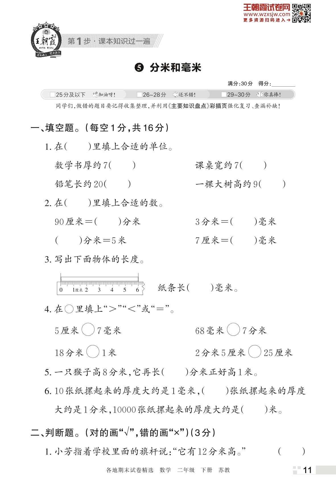 王朝霞期末过课本——5 分米和毫米二年级下册数学(苏教版)