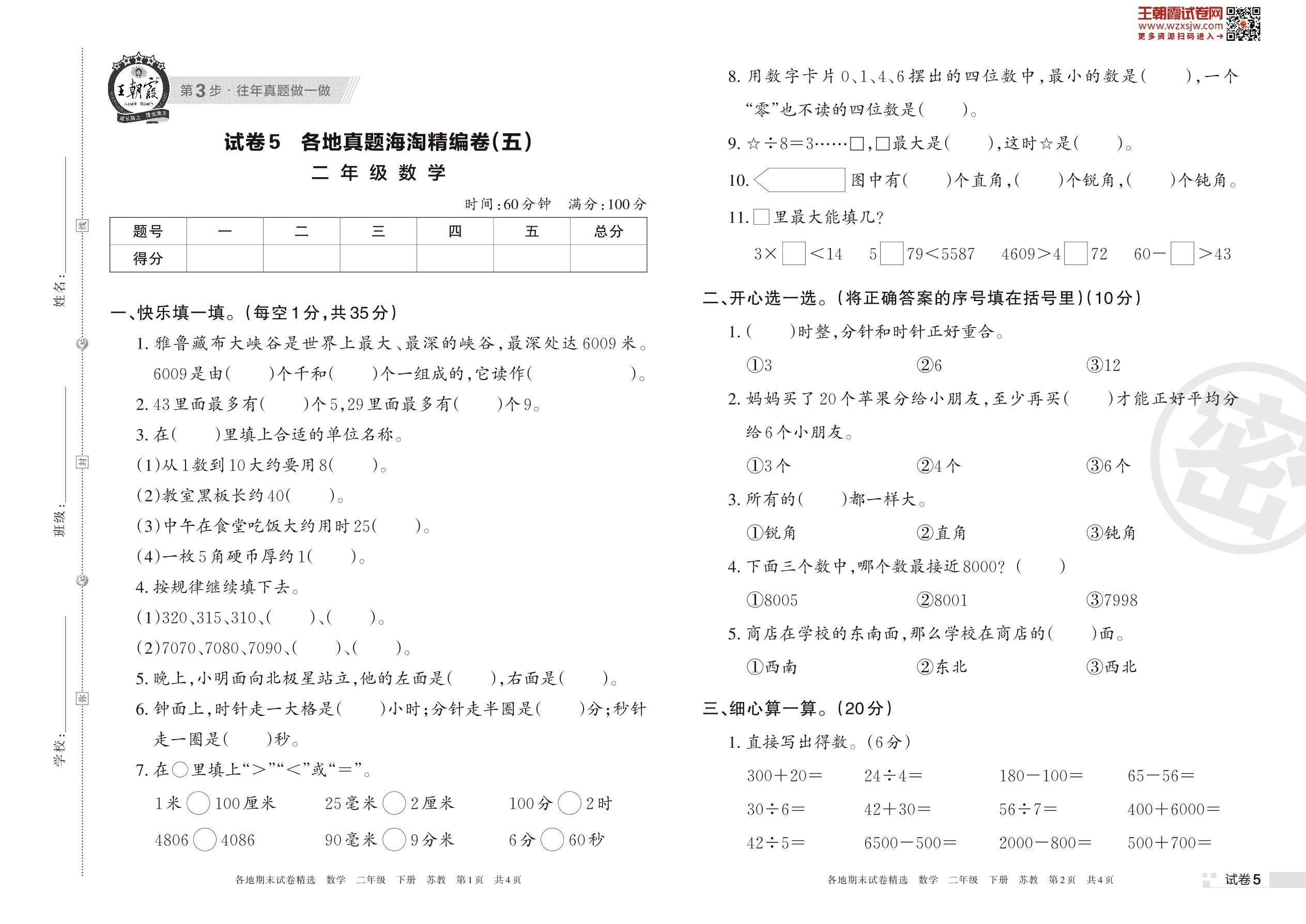 各地真题海淘精编卷(五)二年级下册数学(苏教版)_R230419160237480【5】