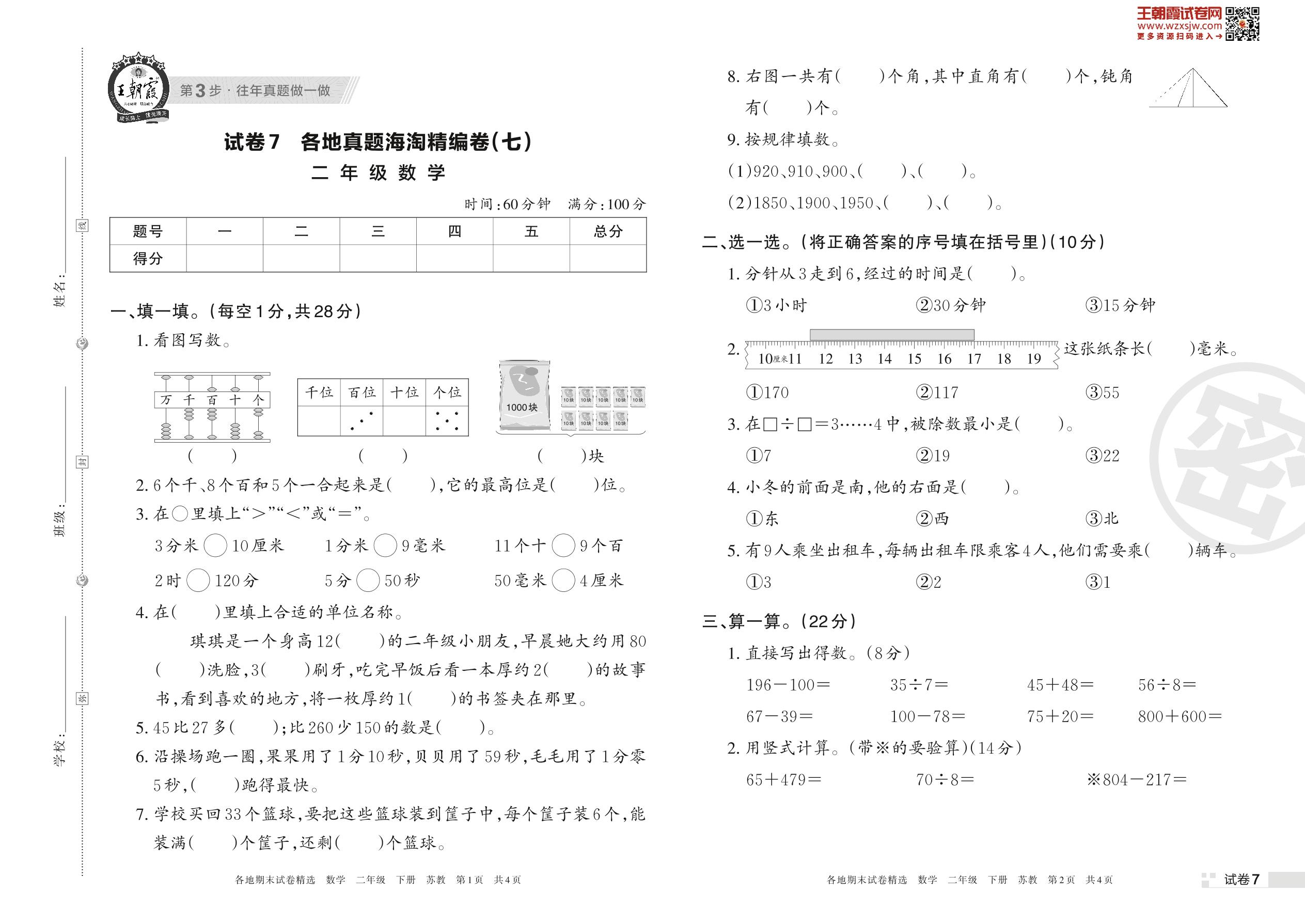 各地真题海淘精编卷(七)二年级下册数学(苏教版)【7】