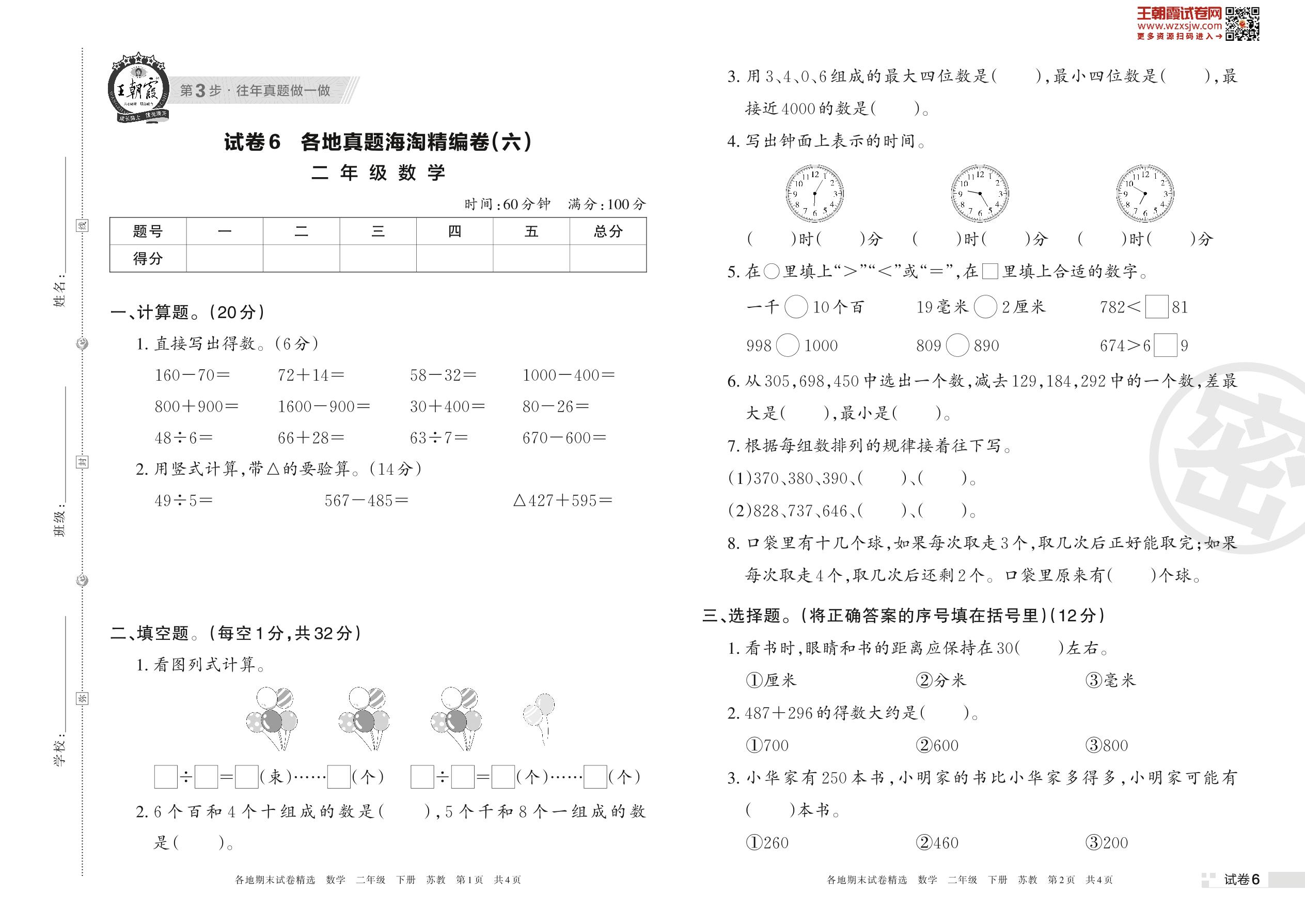 各地真题海淘精编卷(六)二年级下册数学(苏教版)【6】