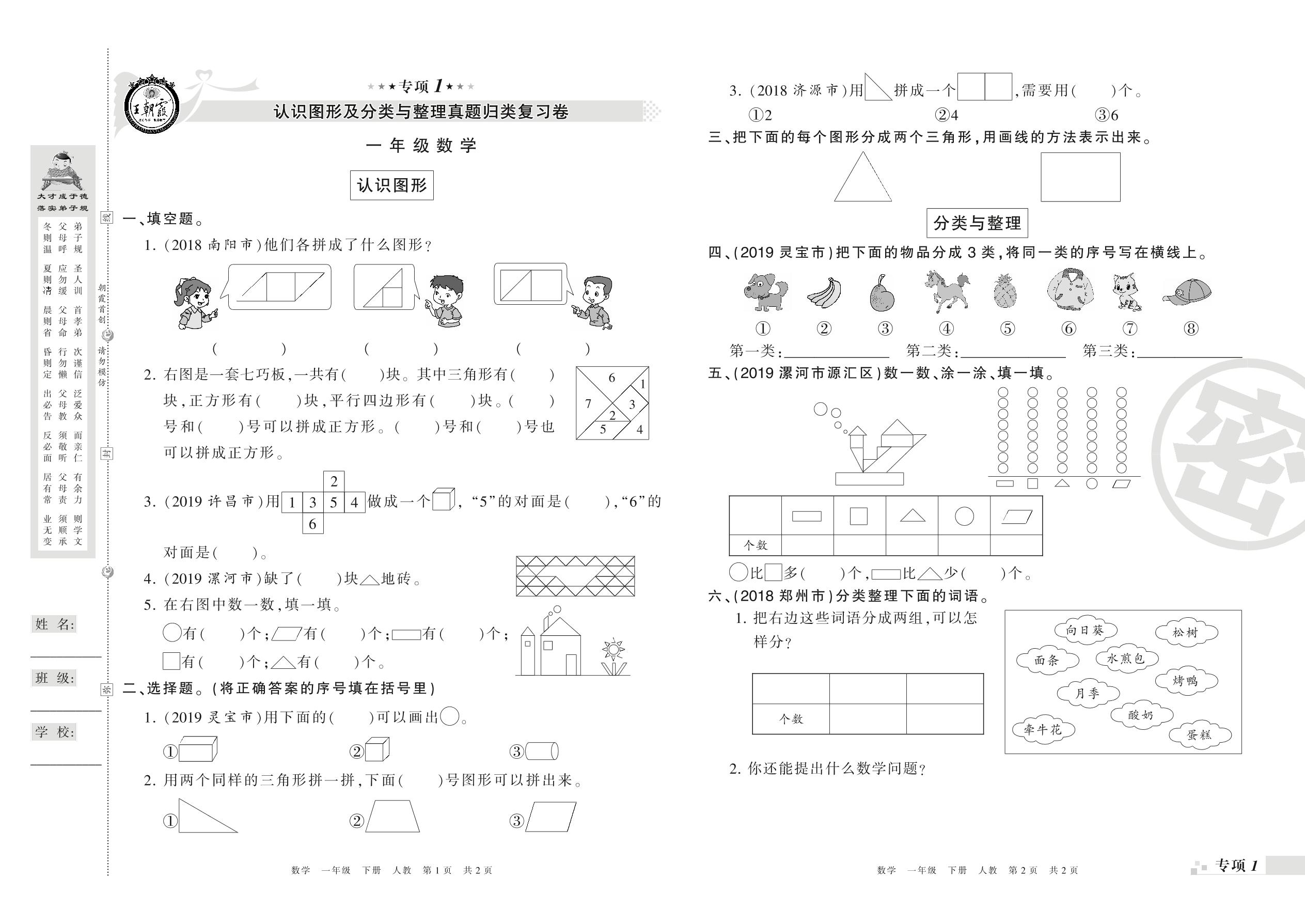 王朝霞期末专项卷——认识图形及分类与整理、100以内数的认识真题归类复习卷一年级下册数学(人教版)_R210802214247【0】