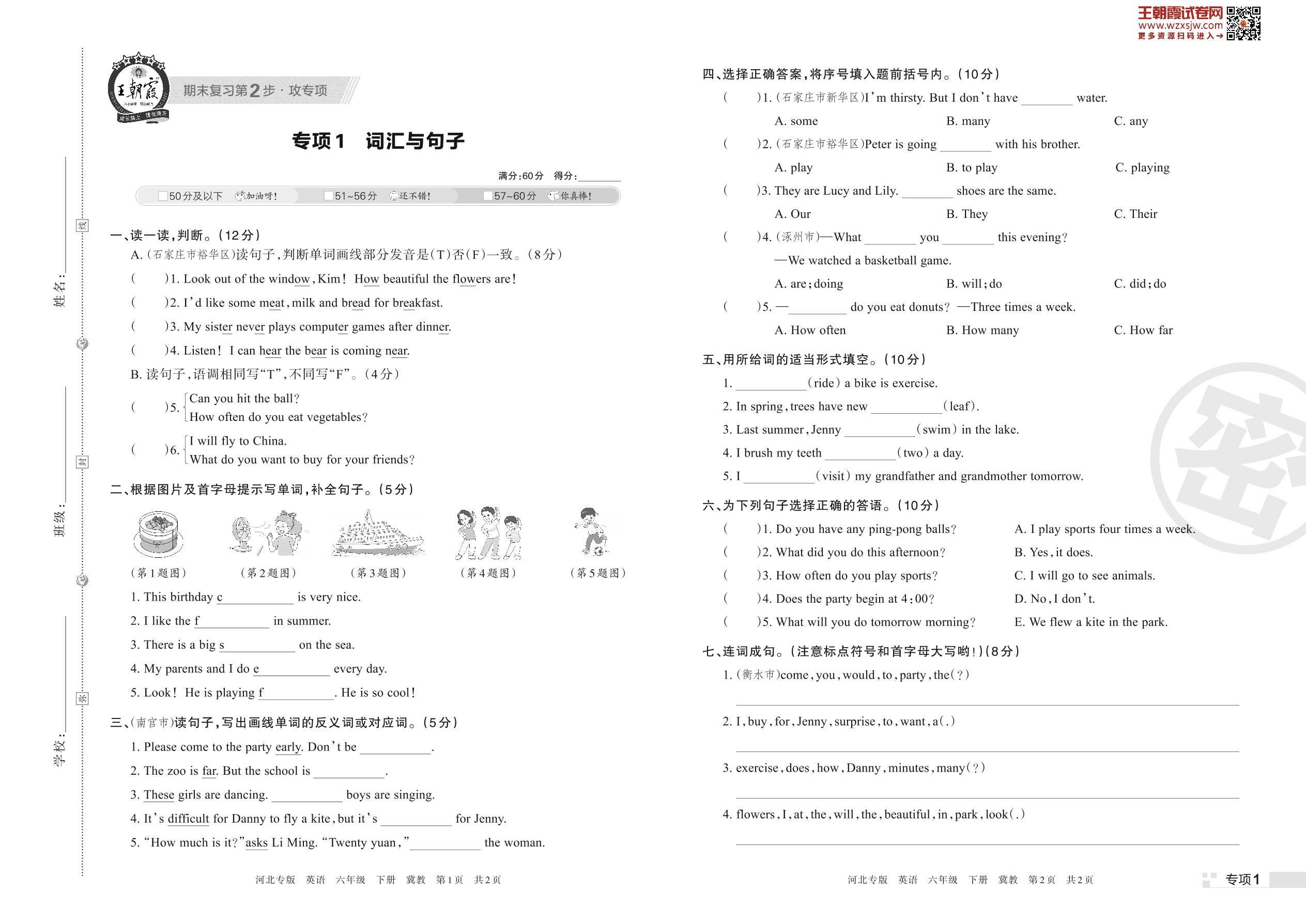 王朝霞期末专项卷——语音与词汇六年级下册英语(冀教版)【1】