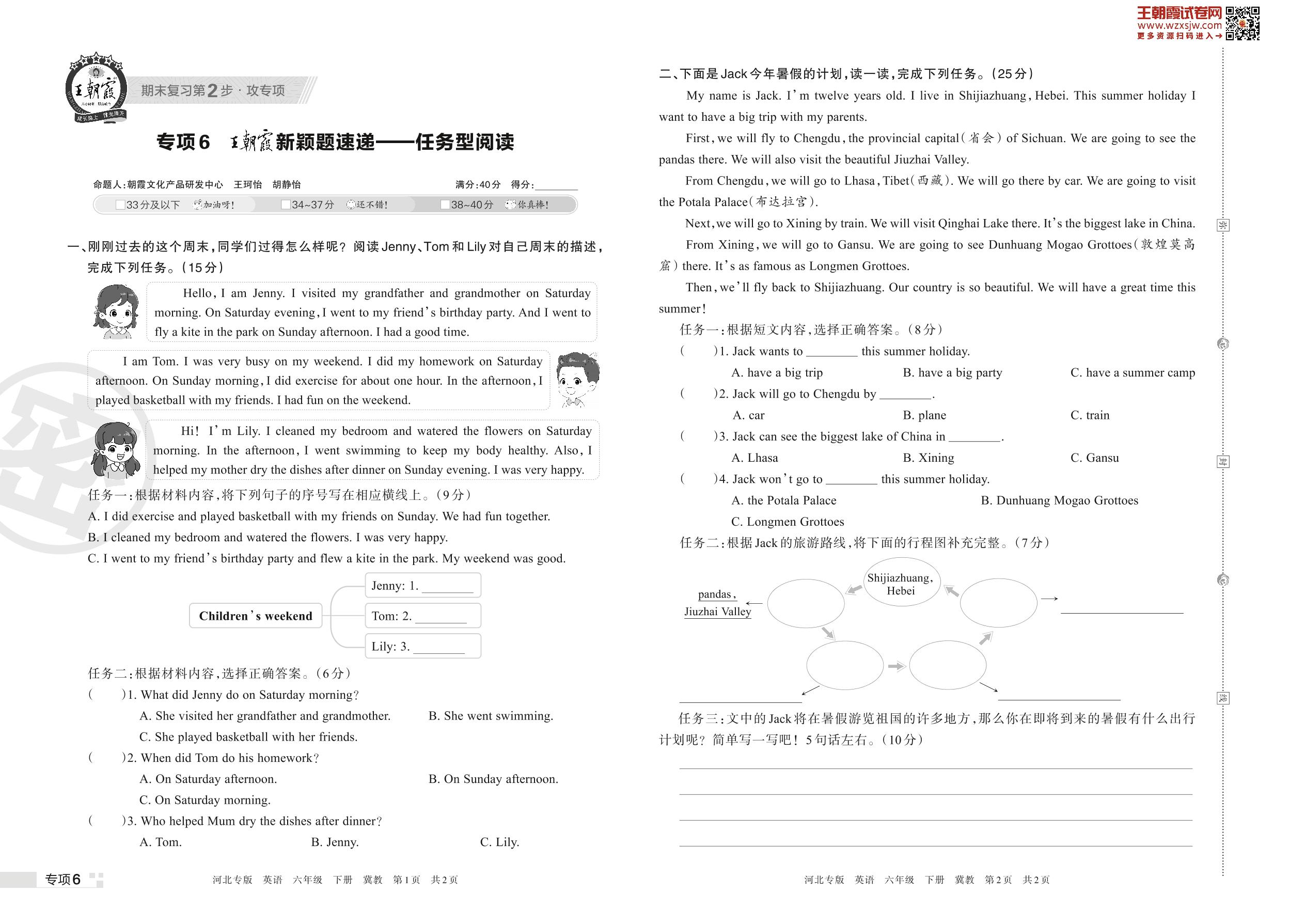 王朝霞期末专项卷——王朝霞新颖题速递:任务型阅读六年级下册英语(冀教版)【6】