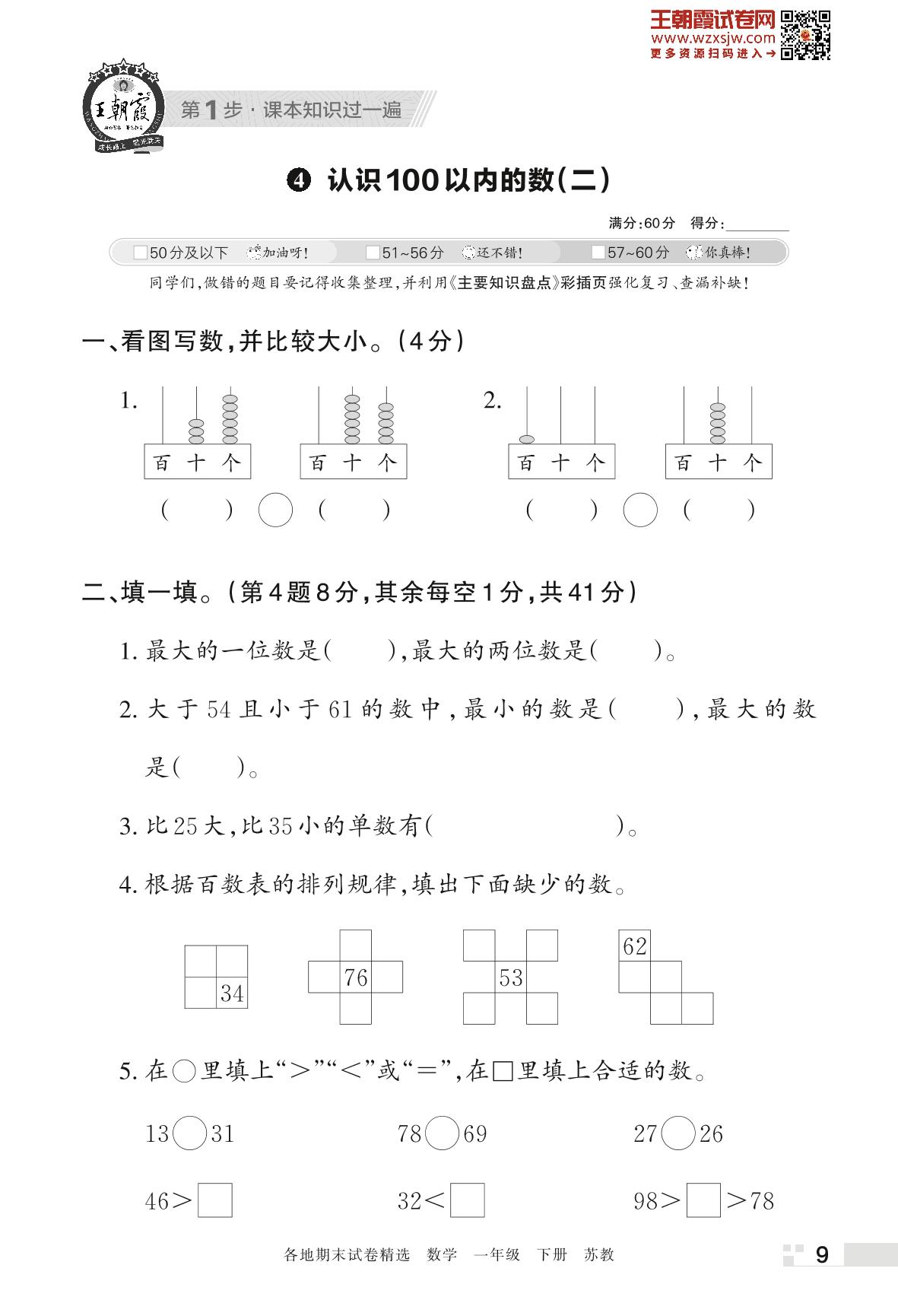 王朝霞期末过课本——4 认识100以内的数(二)一年级下册数学(苏教版)