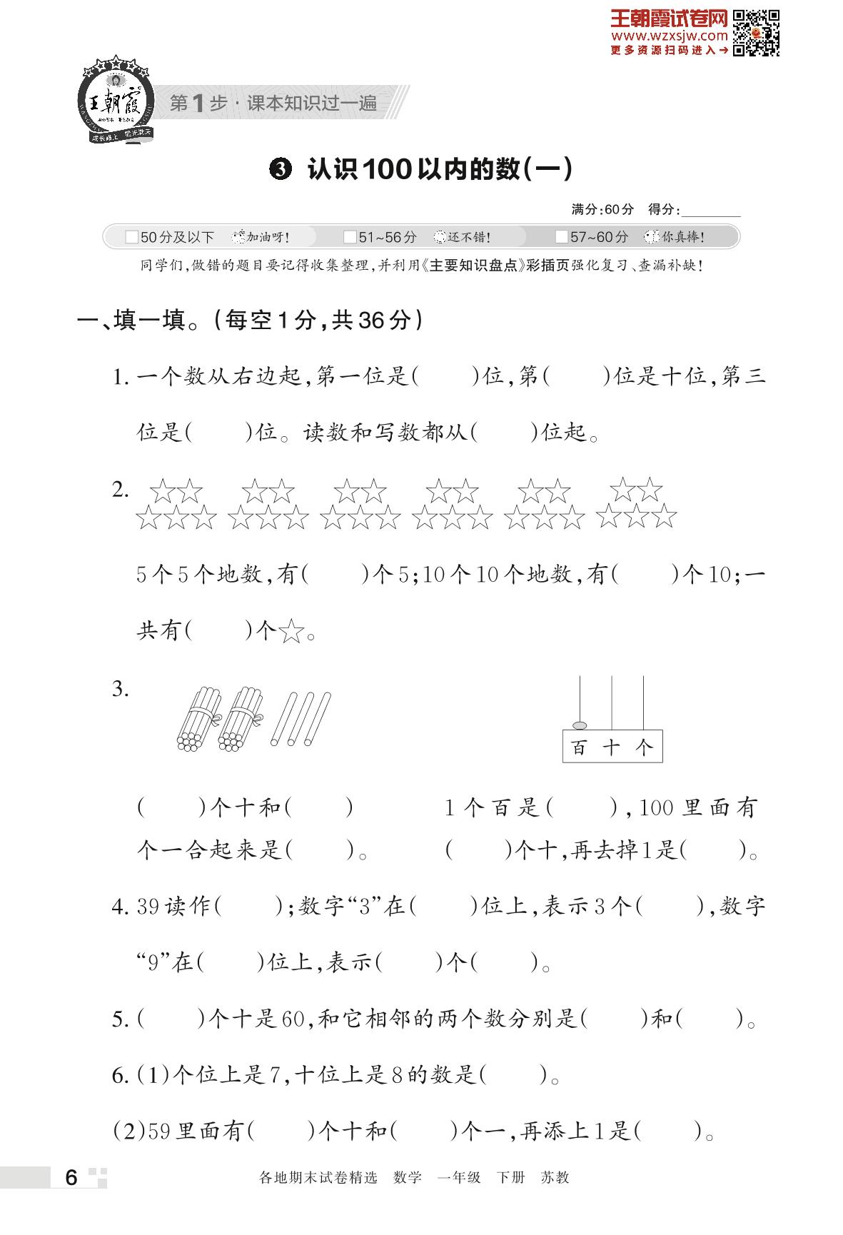 王朝霞期末过课本——3 认识100以内的数(一)一年级下册数学(苏教版)