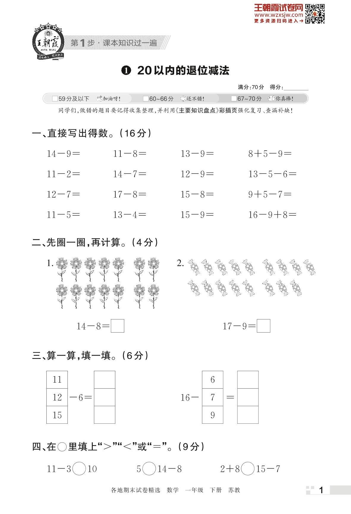 王朝霞期末过课本——1 20以内的退位减法一年级下册数学(苏教版)