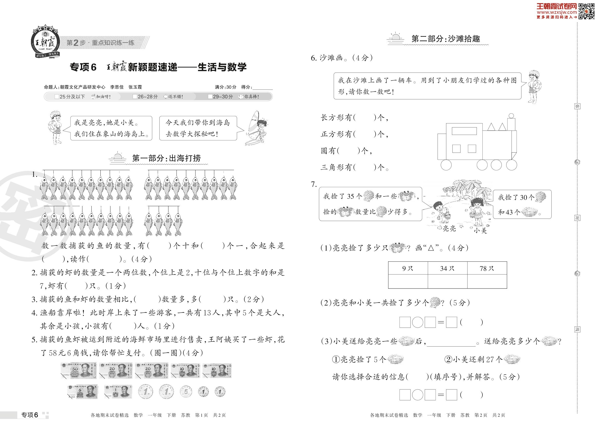 王朝霞期末专项卷——王朝霞新颖题速递:生活与数学一年级下册数学(苏教版)【6】