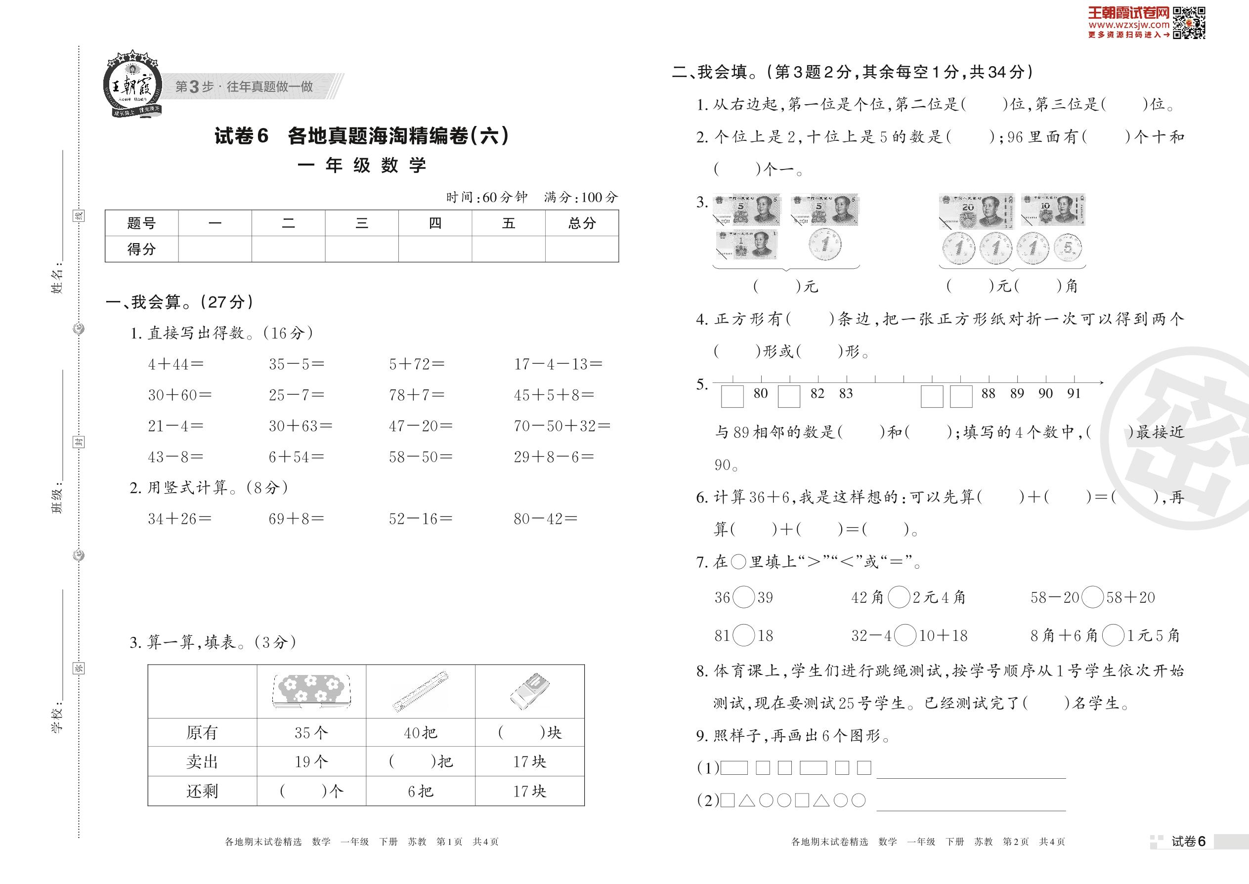 各地真题海淘精编卷(六)一年级下册数学(苏教版)【6】