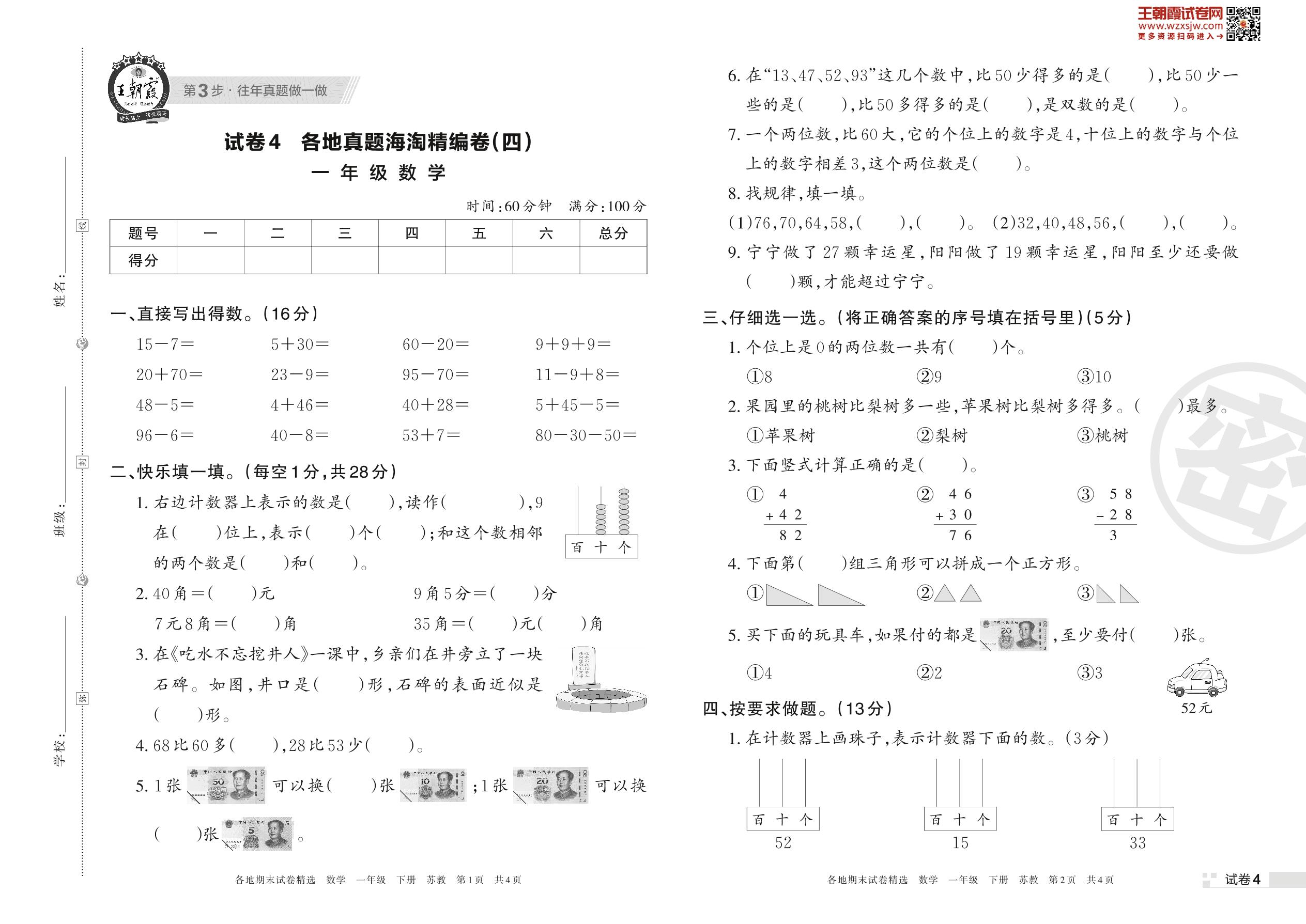 各地真题海淘精编卷(四)一年级下册数学(苏教版)_R230419161204164【4】