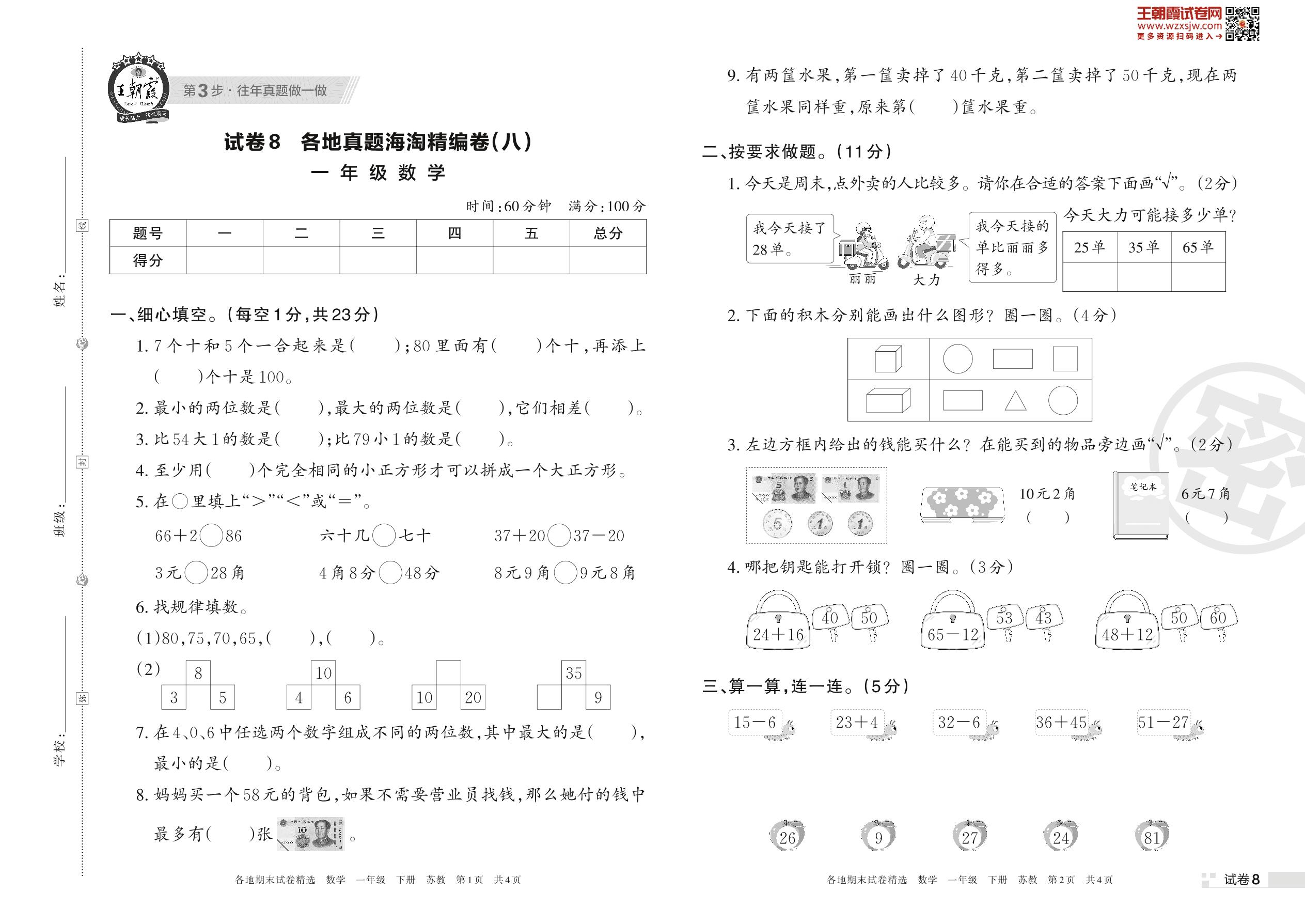 各地真题海淘精编卷(八)一年级下册数学(苏教版)【8】