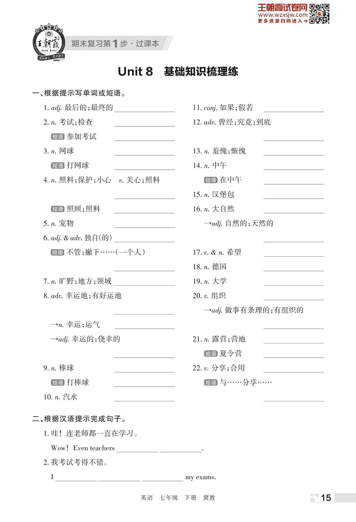 王朝霞期末过课本——Unit 8 基础知识梳理练七年级下册英语(冀教版)_R230419161207060