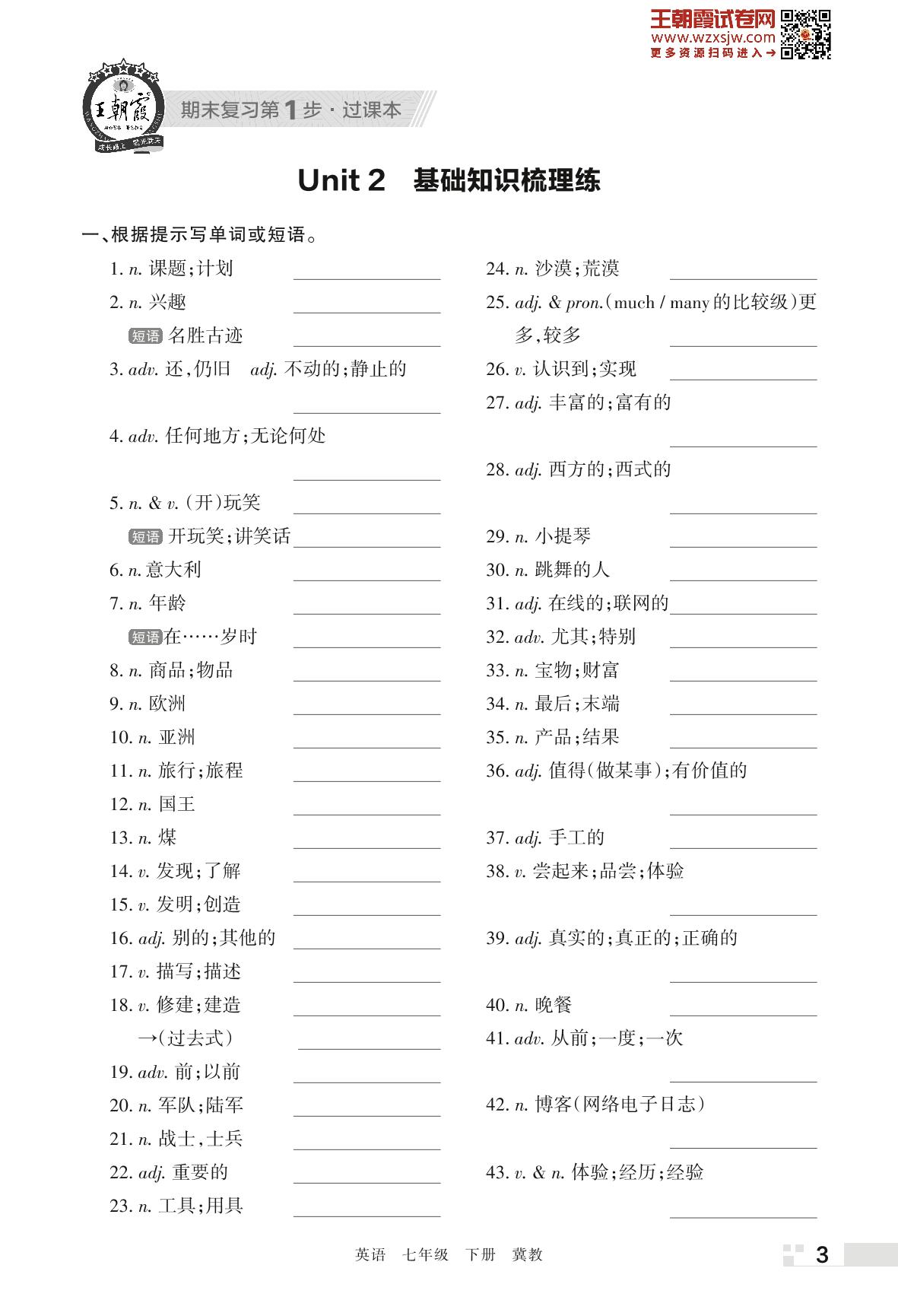 王朝霞期末过课本——Unit 2 基础知识梳理练七年级下册英语(冀教版)_R230419161208036