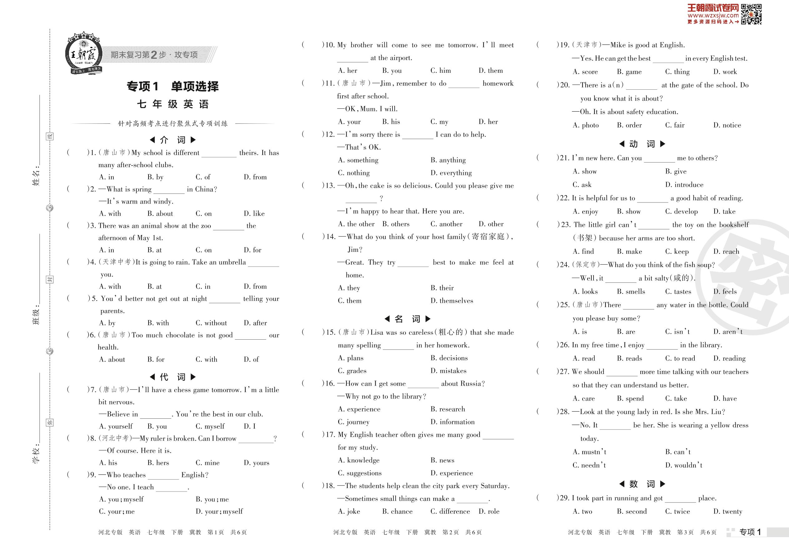 王朝霞期末专项卷——单项选择七年级下册英语(冀教版)_R230419161209174【1】