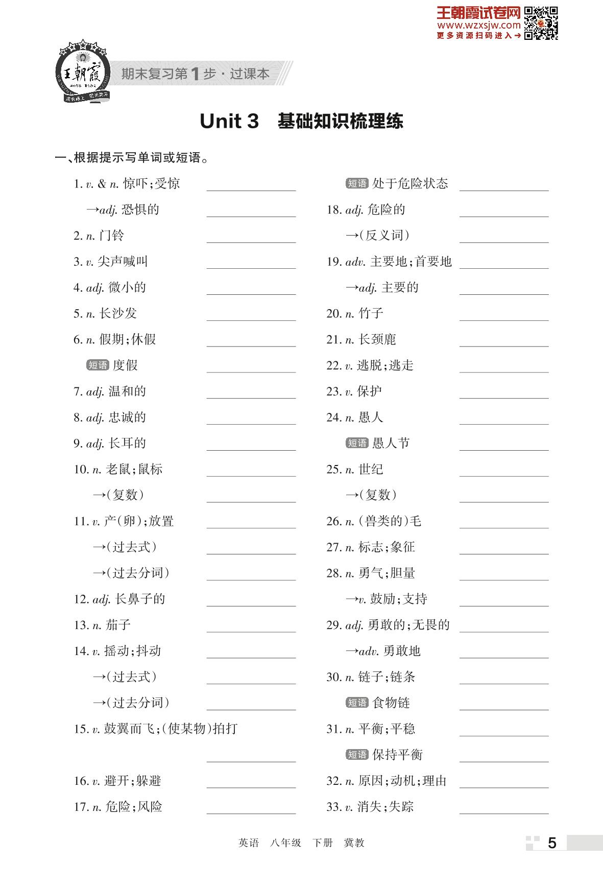 王朝霞期末过课本——Unit 3 基础知识梳理练八年级下册英语(冀教版)_R230419161904214