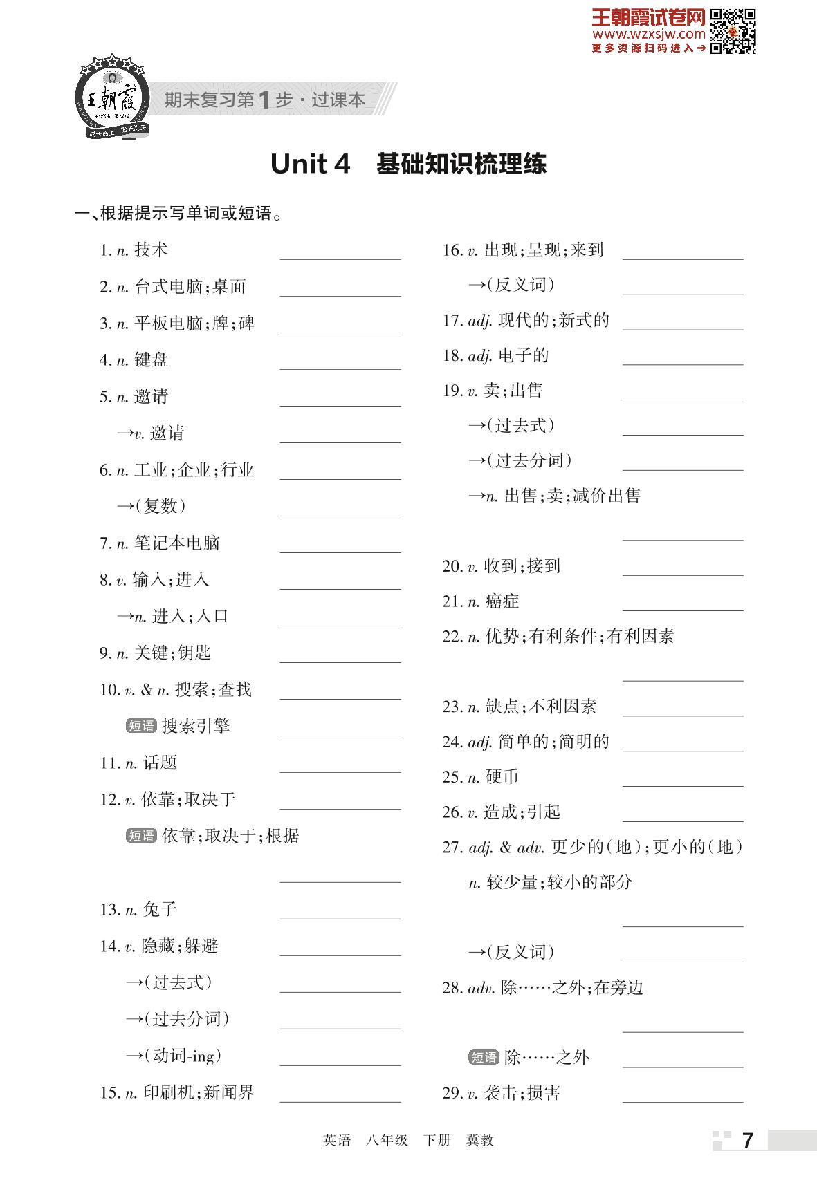 王朝霞期末过课本——Unit 4 基础知识梳理练八年级下册英语(冀教版)_R230419161904645