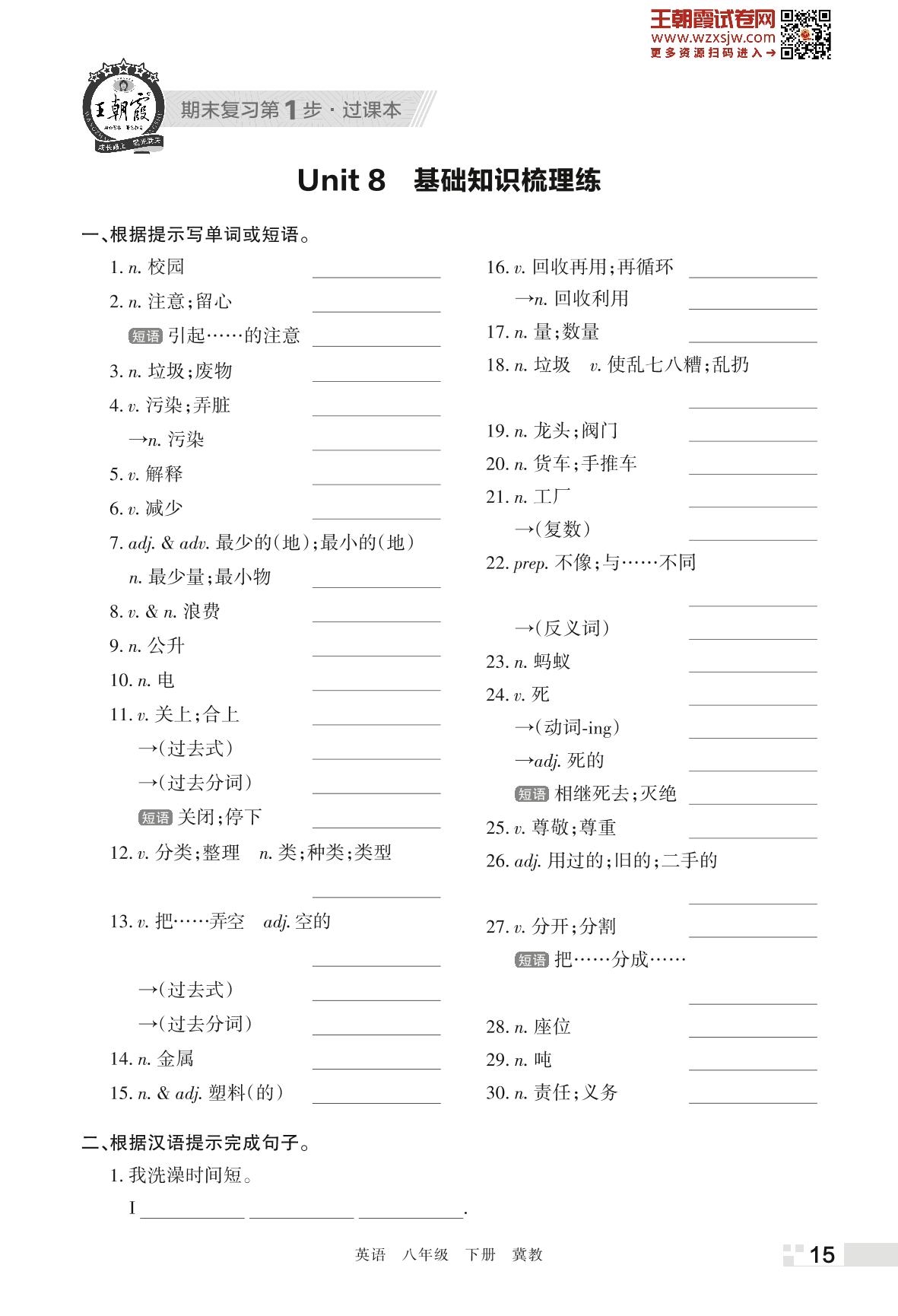 王朝霞期末过课本——Unit 8 基础知识梳理练八年级下册英语(冀教版)_R230419161905354
