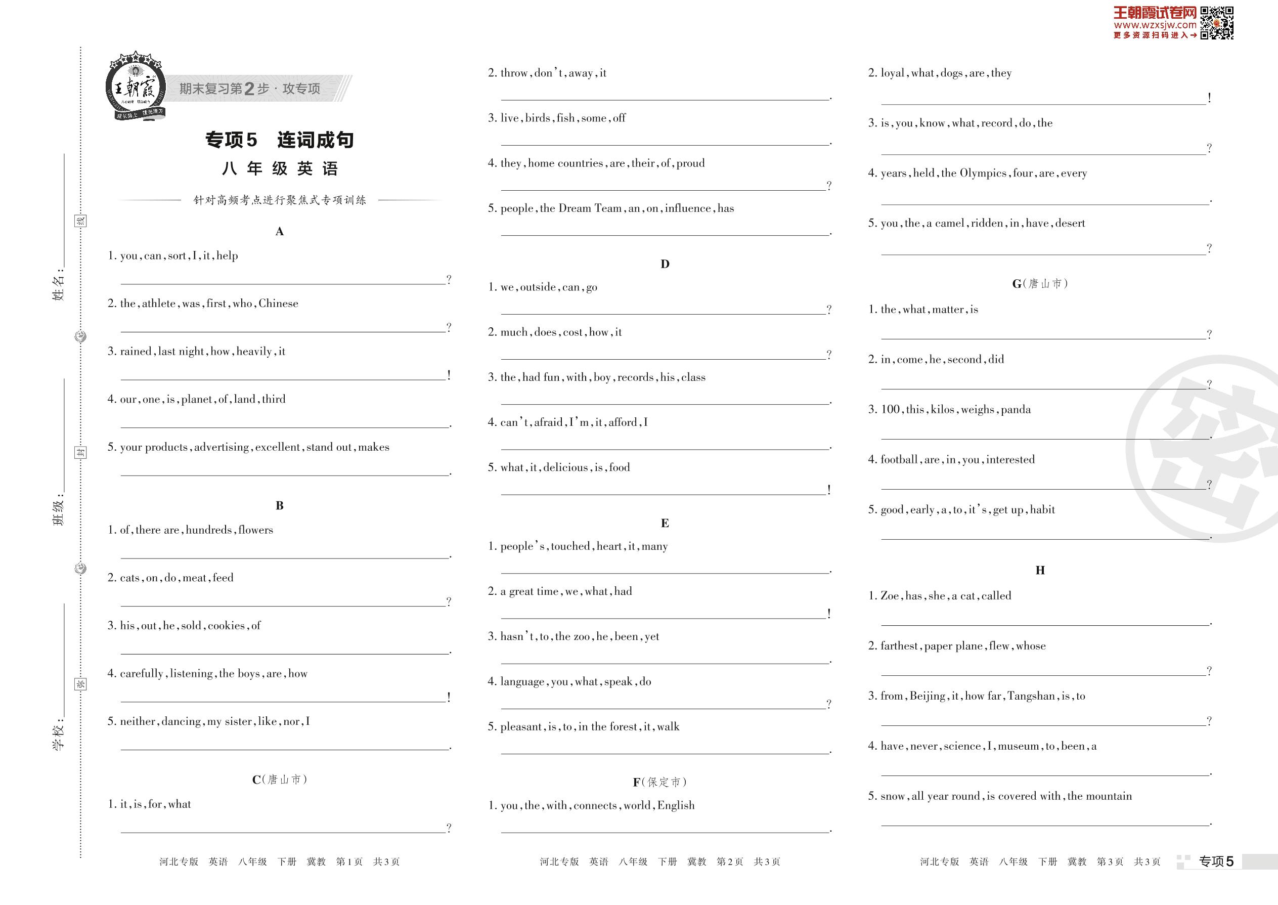 王朝霞期末专项卷——连词成句八年级下册英语(冀教版)_R230419161905559【5】