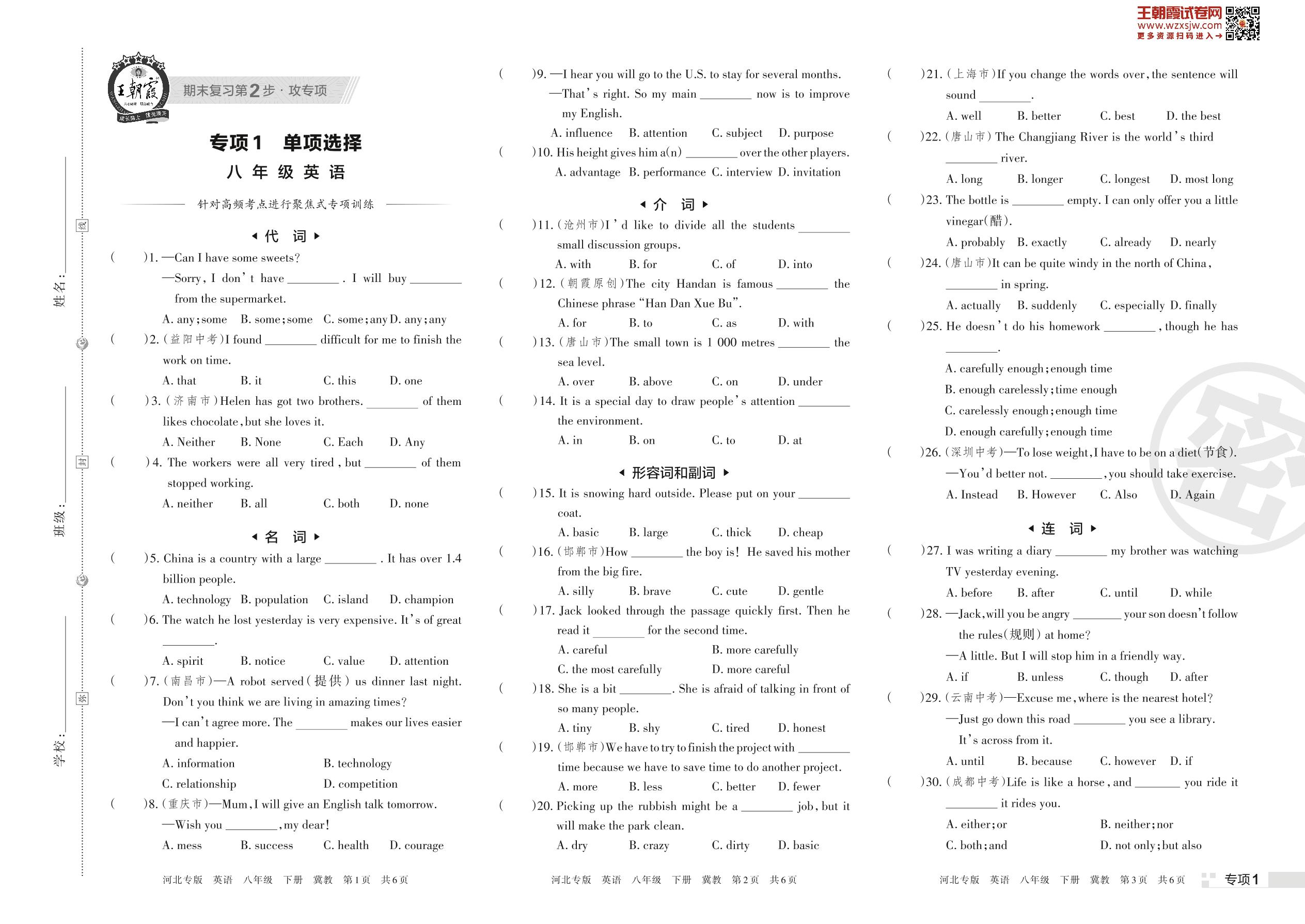 王朝霞期末专项卷——单项选择八年级下册英语(冀教版)_R230419161905914【1】