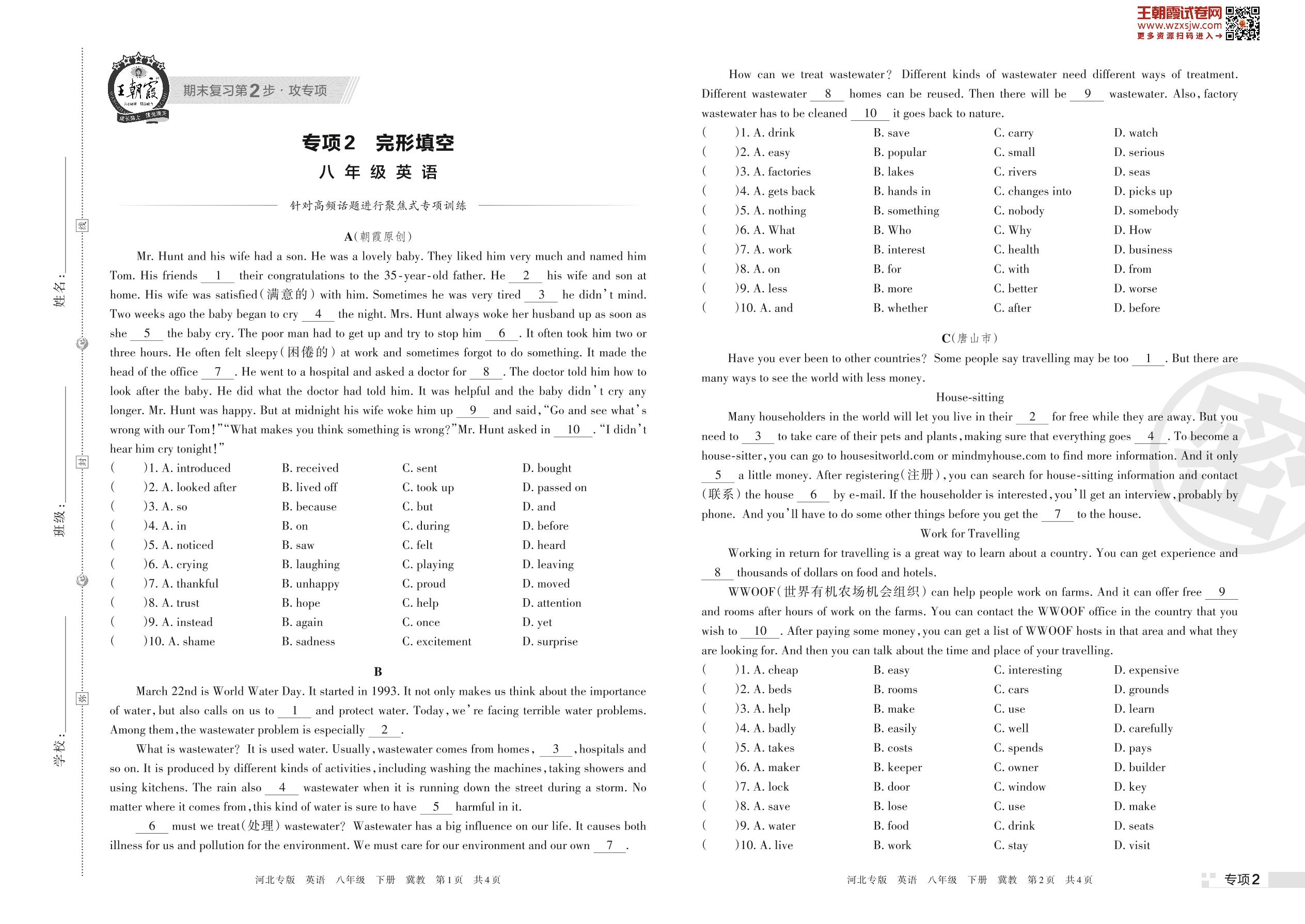 王朝霞期末专项卷——完形填空八年级下册英语(冀教版)_R230419161905195【2】