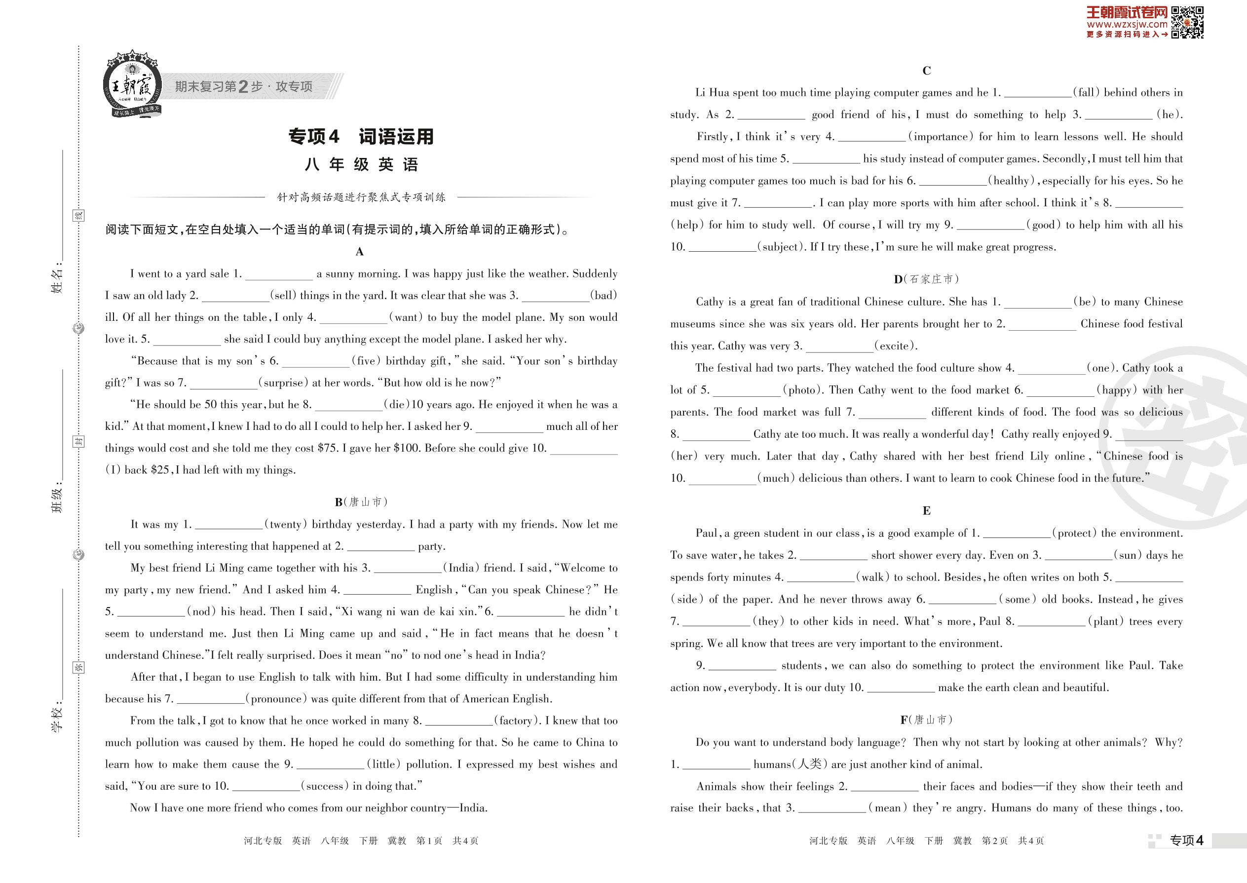 王朝霞期末专项卷——词语运用八年级下册英语(冀教版)_R230419161906705【4】