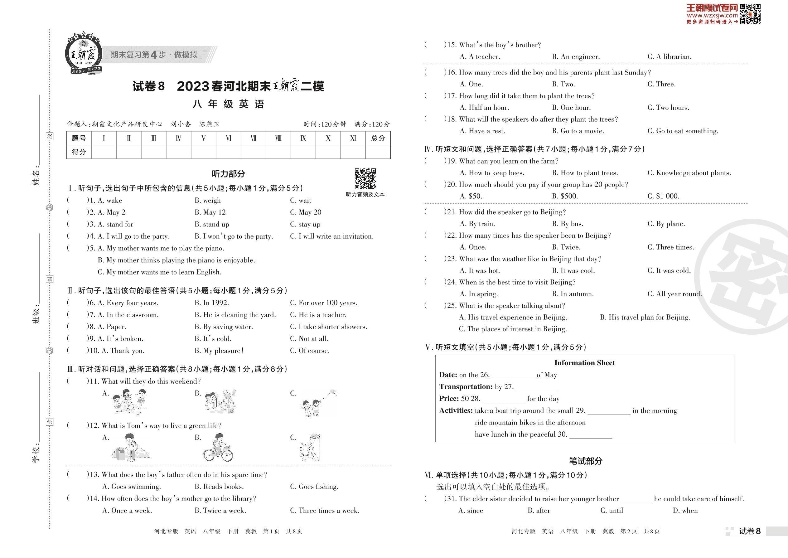 王朝霞期末模拟卷八年级下册英语(冀教版)_R230419161907478【8】