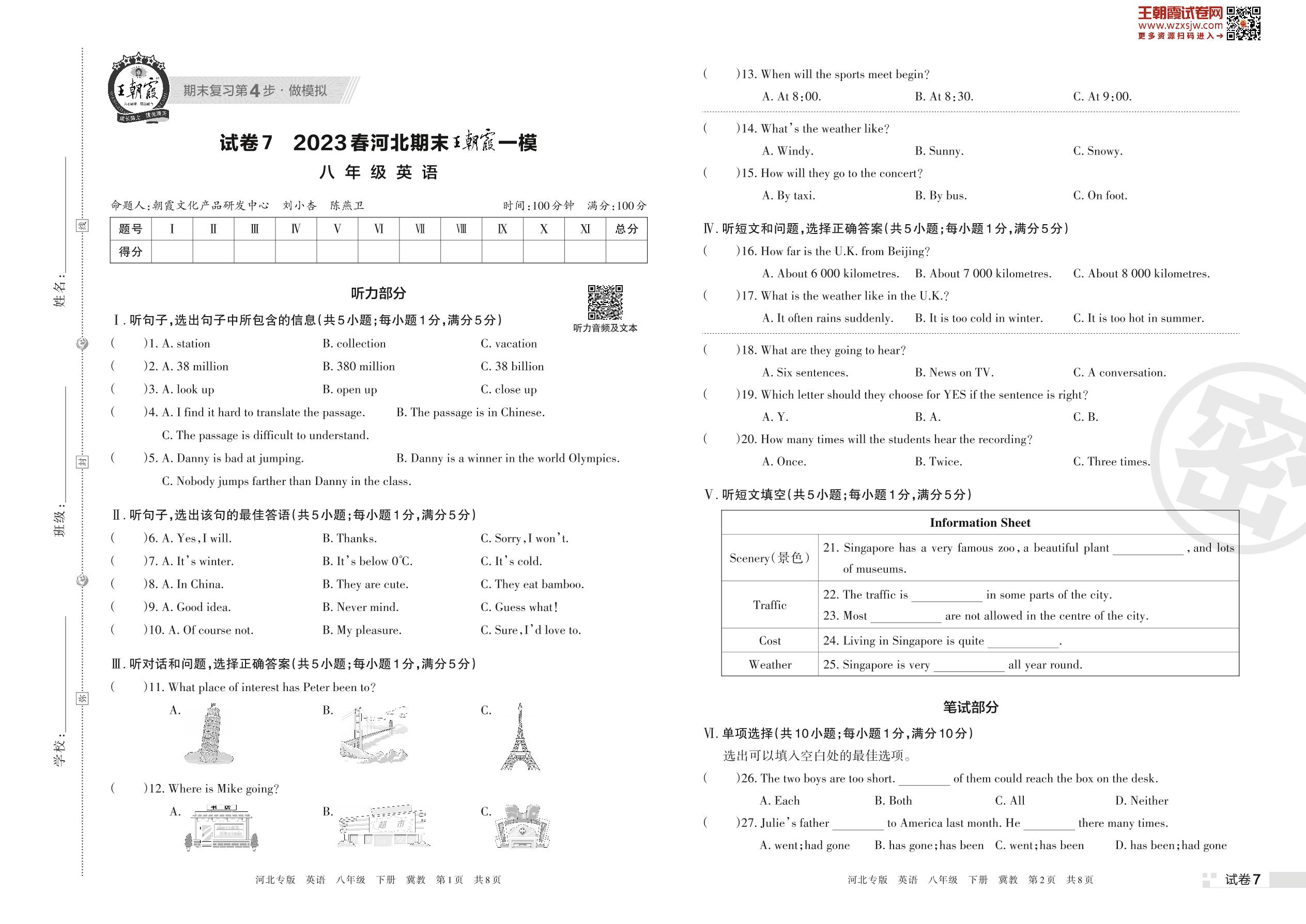 王朝霞期末模拟卷八年级下册英语(冀教版)_R230419161907367【7】
