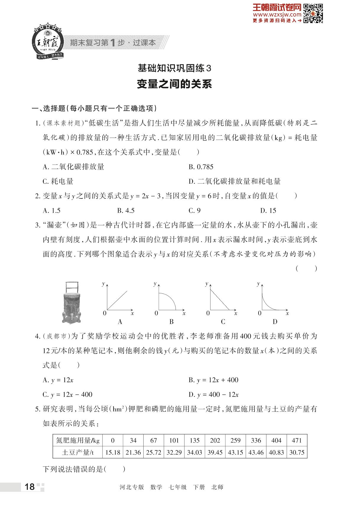 王朝霞期末过课本——基础知识巩固练3 变量之间的关系七年级下册数学(北师版)_R230419162853148