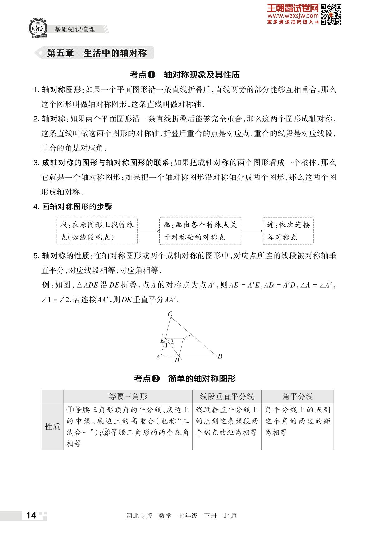王朝霞期末知识梳理——第五章 生活中的轴对称七年级下册数学(北师版)