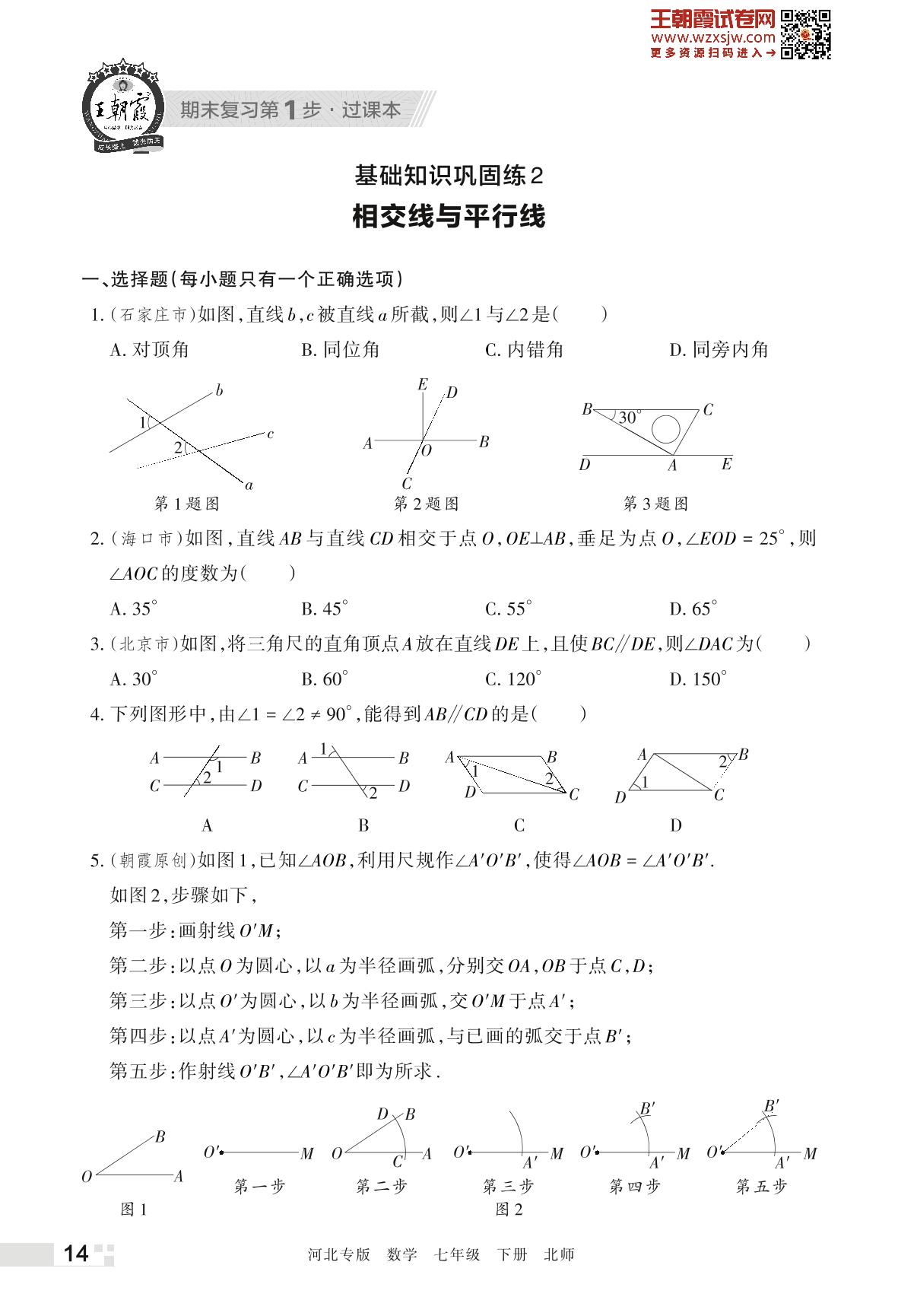 王朝霞期末过课本——基础知识巩固练2 相交线与平行线七年级下册数学(北师版)_R230419162854857
