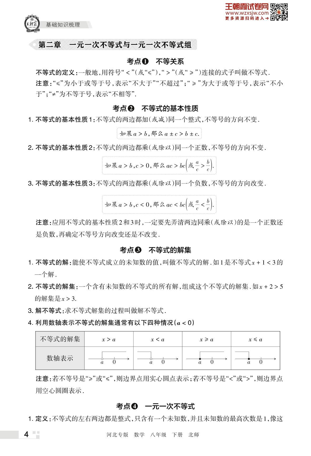 王朝霞期末知识梳理——第二章 一元一次不等式与一元一次不等式组八年级下册数学(北师版)