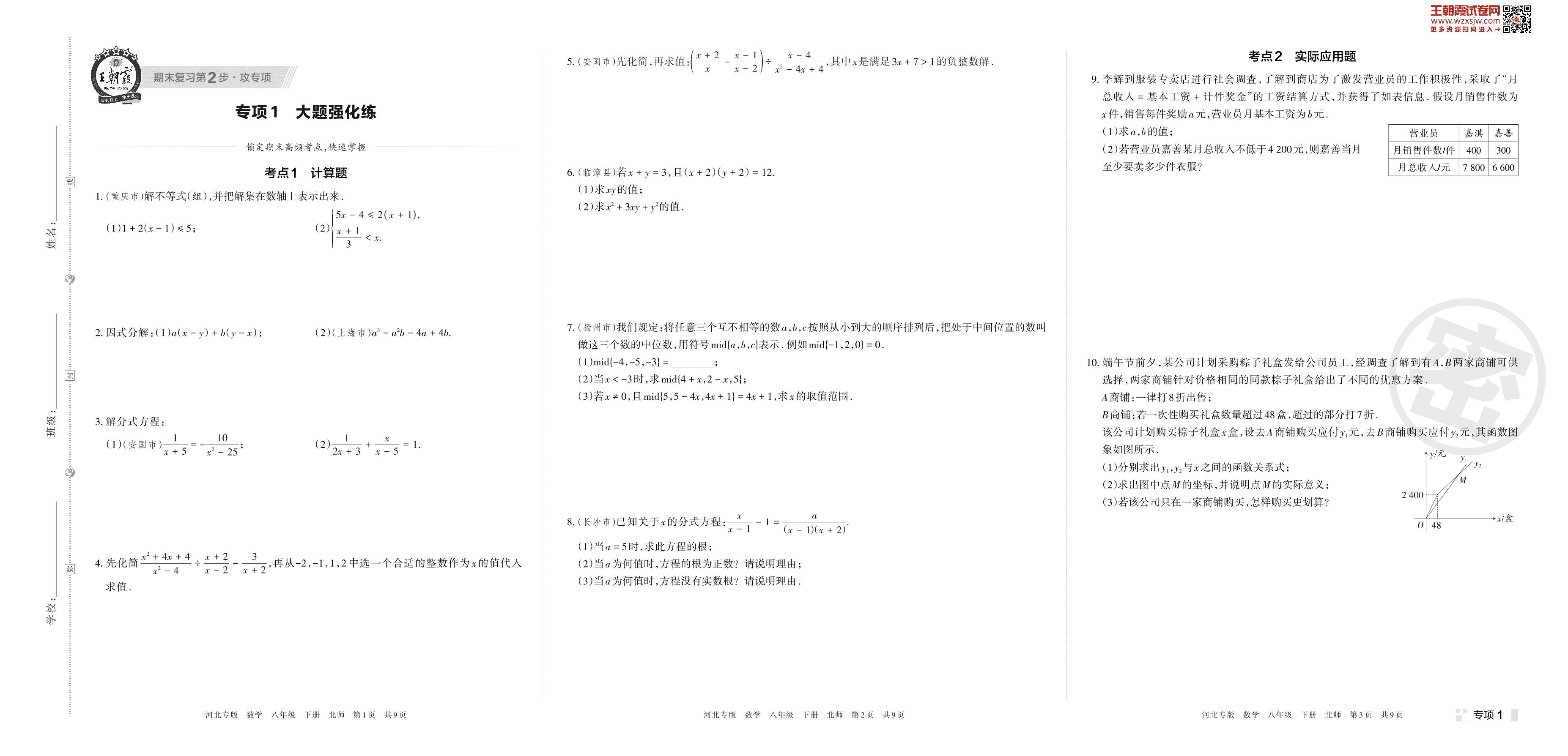 王朝霞期末专项卷——大题强化练八年级下册数学(北师版)【1】