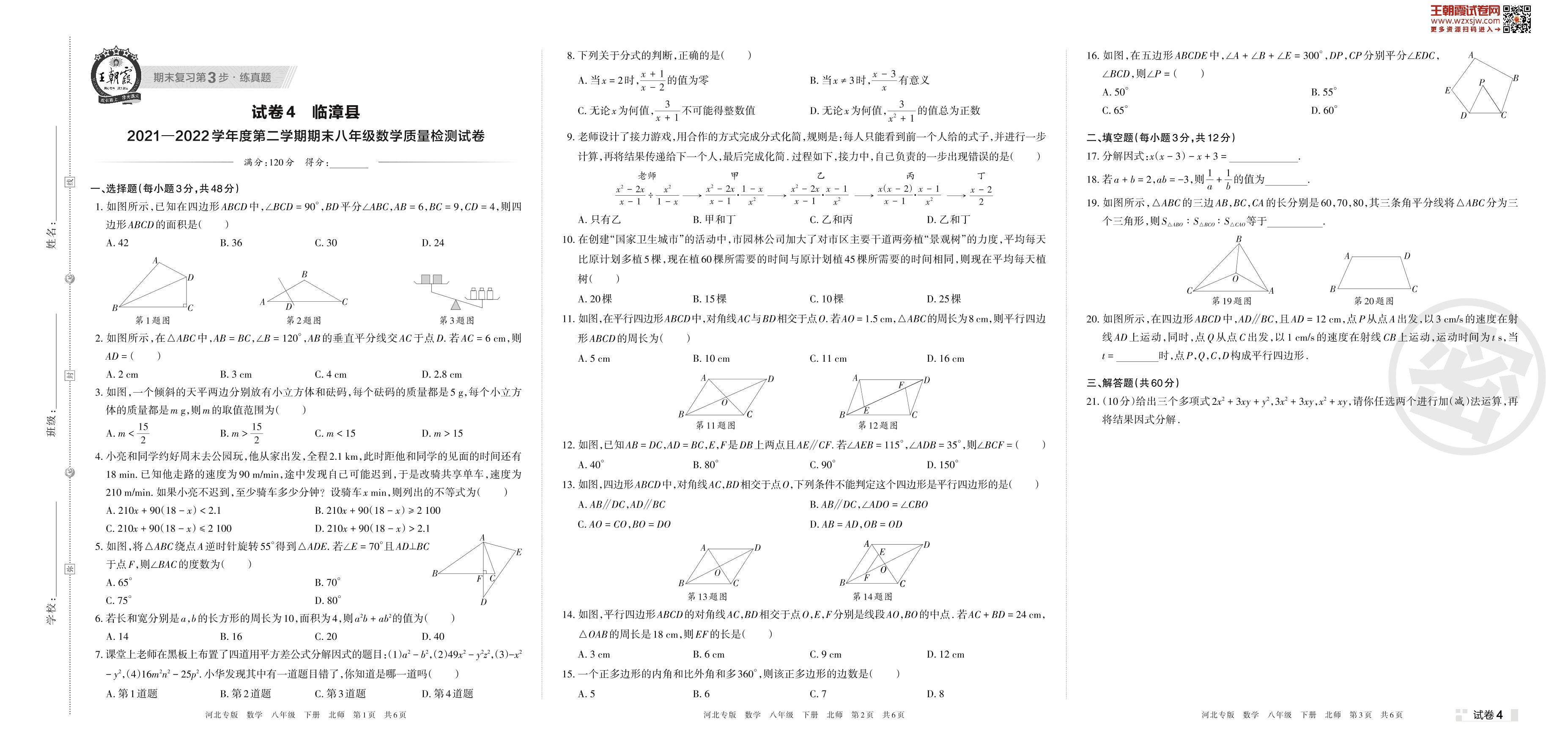 临漳县2021—2022学年度第二学期期末八年级数学质量检测试卷(北师版)【4】