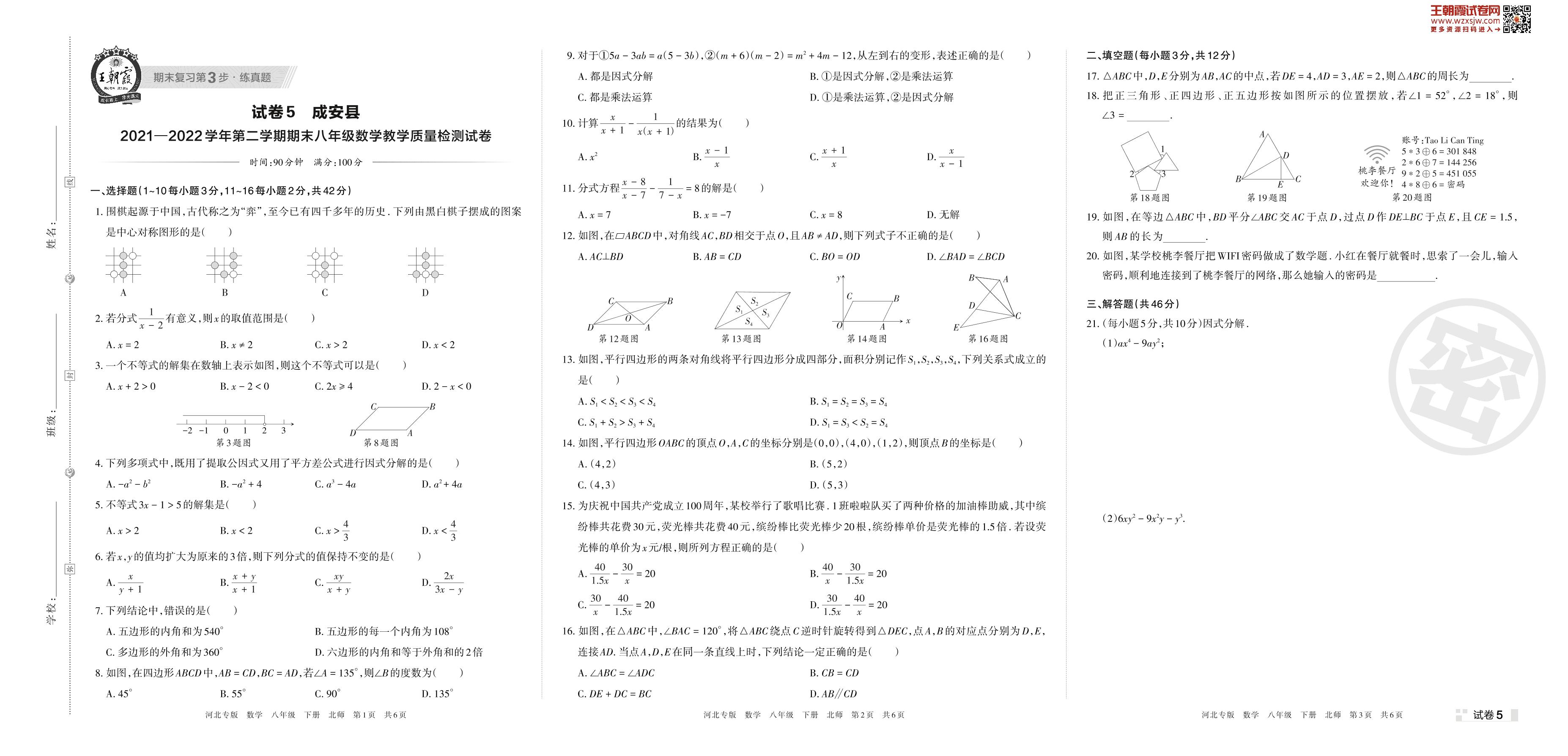 成安县2021—2022学年第二学期期末八年级数学教学质量检测试卷(北师版)【5】