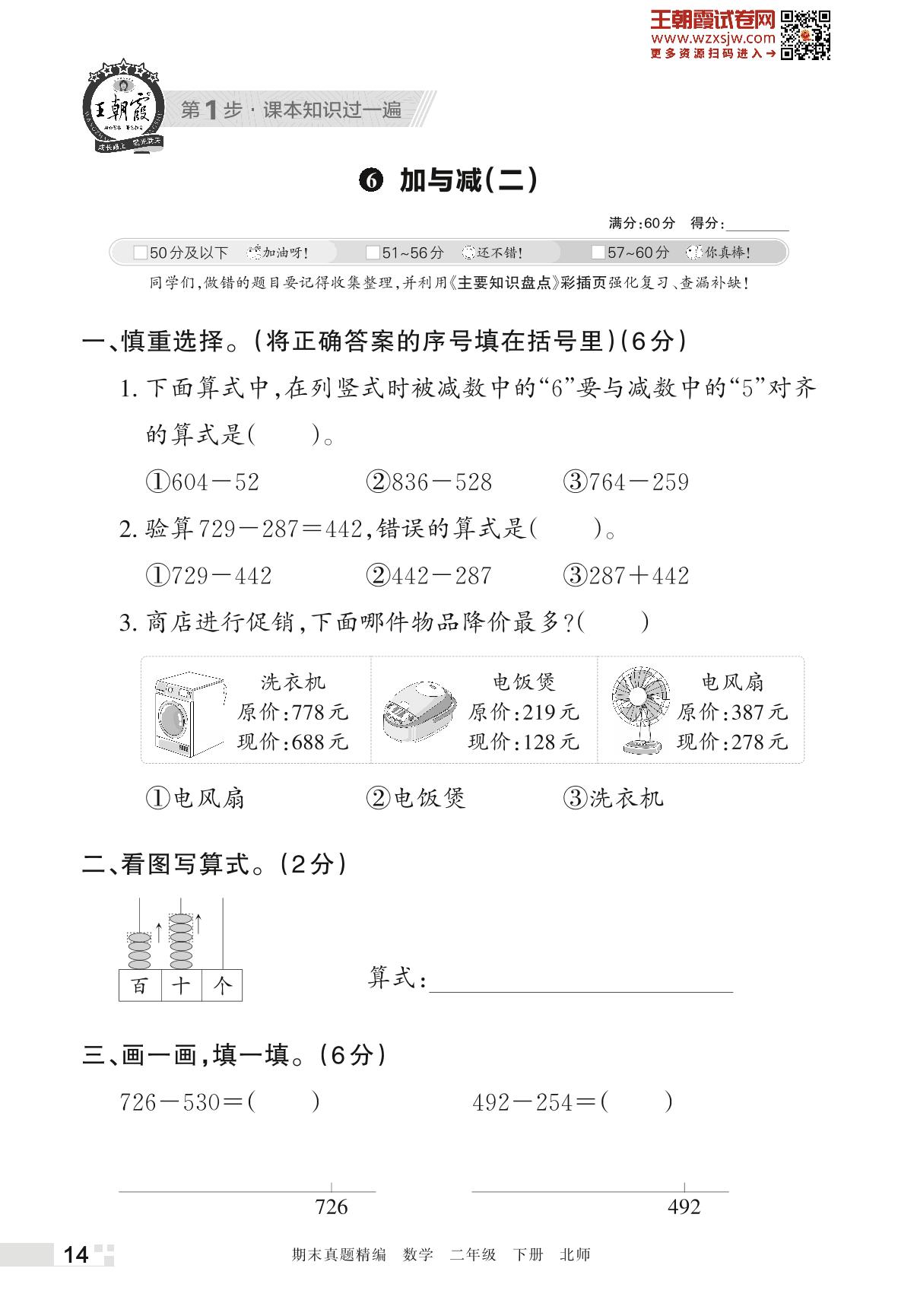王朝霞期末过课本——6 加与减(二)二年级下册数学(北师版)_R230419173443735