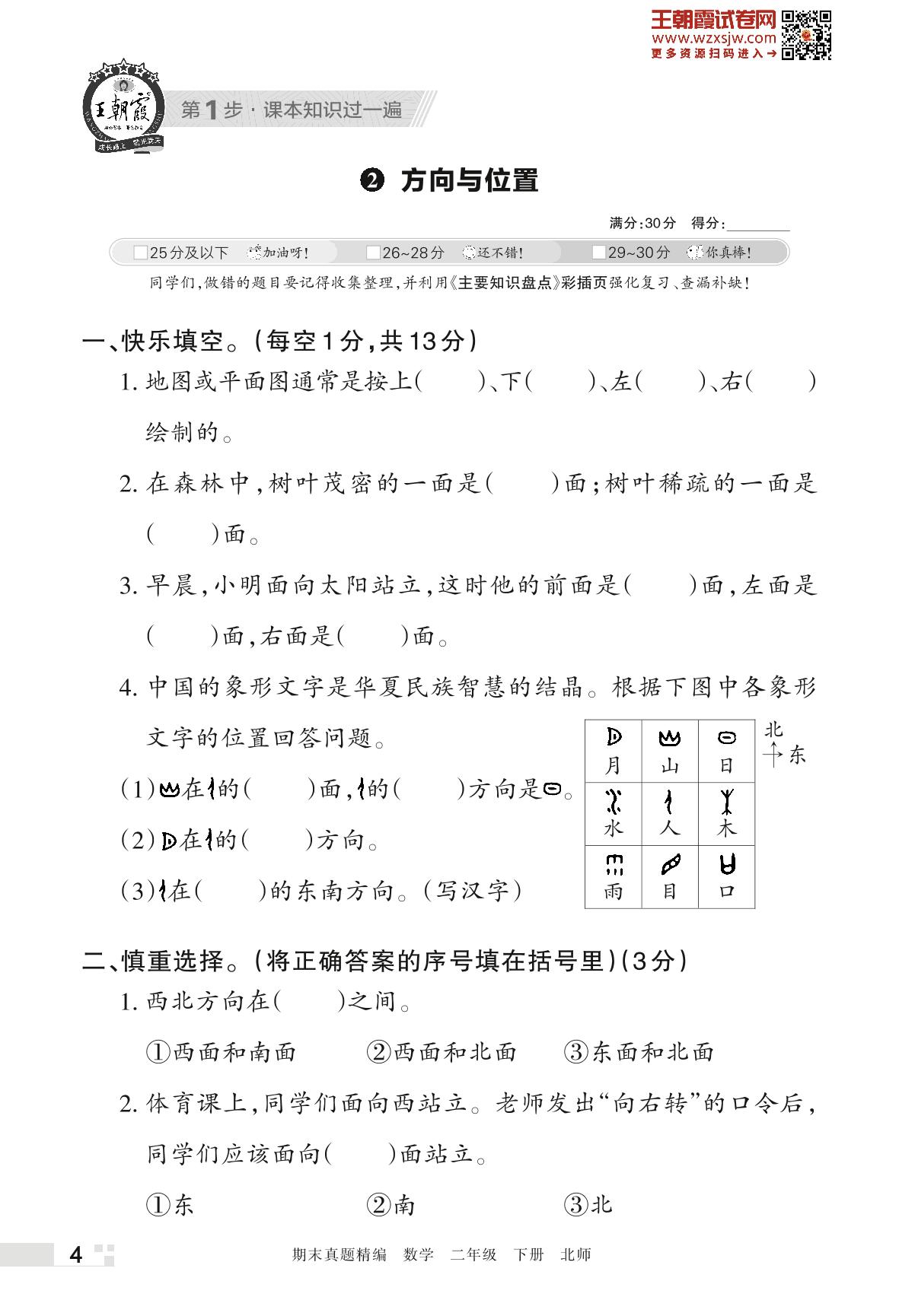 王朝霞期末过课本——2 方向与位置二年级下册数学(北师版)_R230419173443285