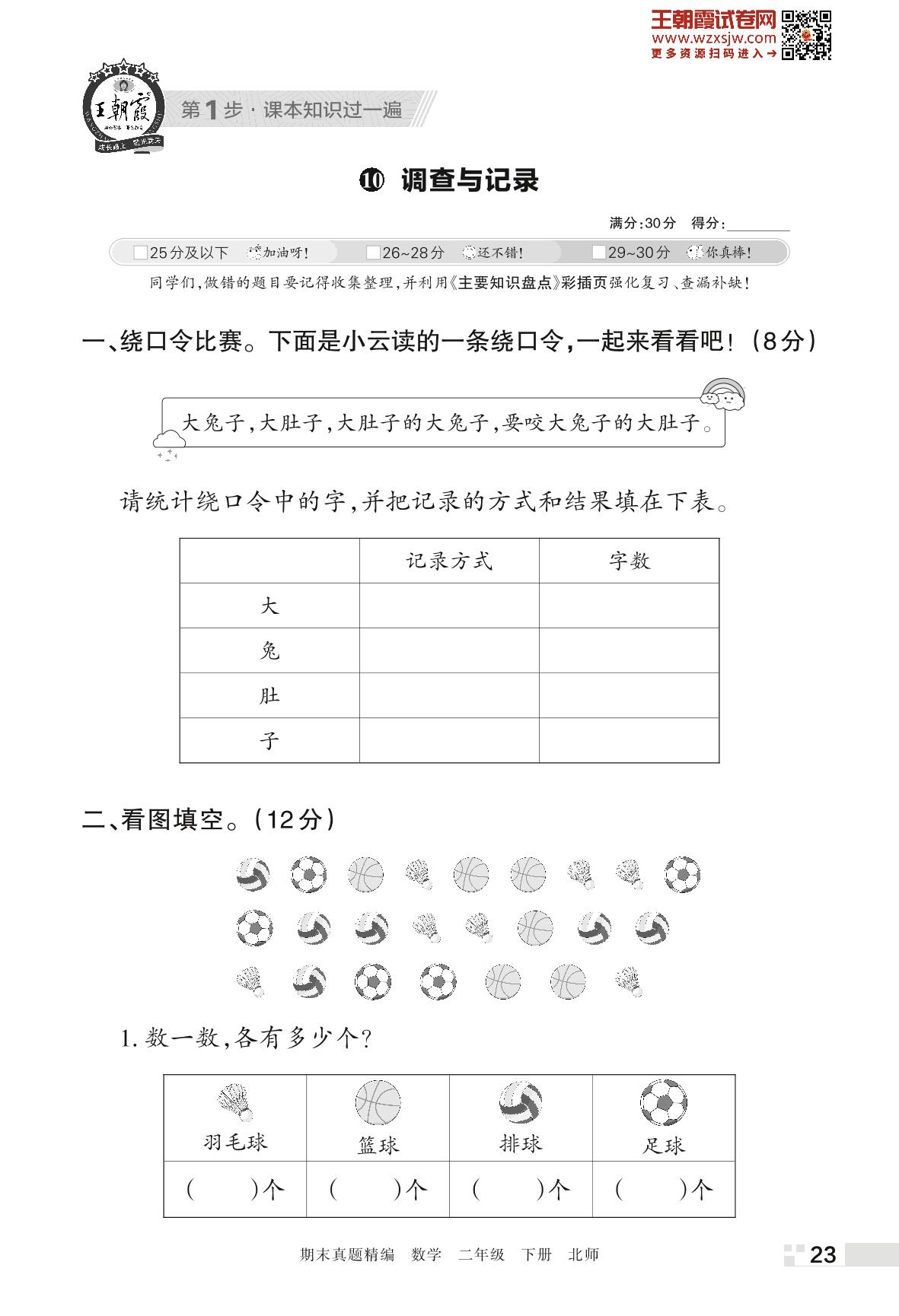 王朝霞期末过课本——10 调查与记录二年级下册数学(北师版)_R230419173443297