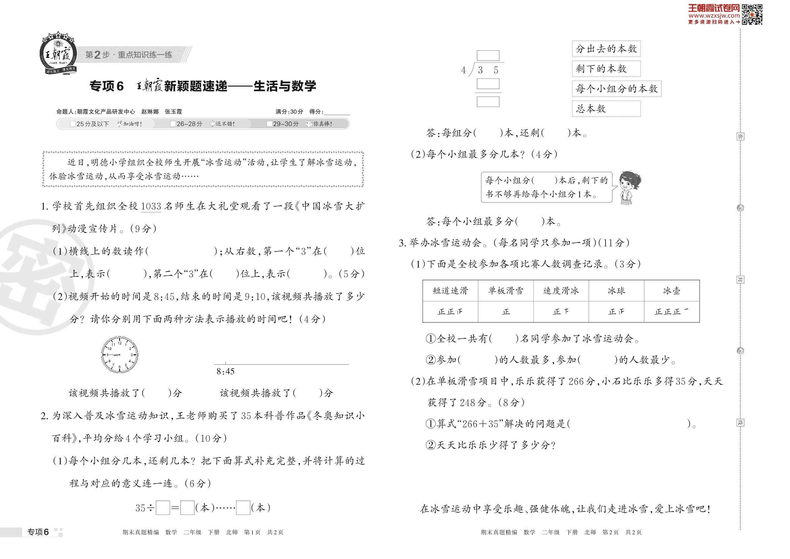 王朝霞期末专项卷——王朝霞新颖题速递:生活与数学二年级下册数学(北师版)_R230419173444654【6】