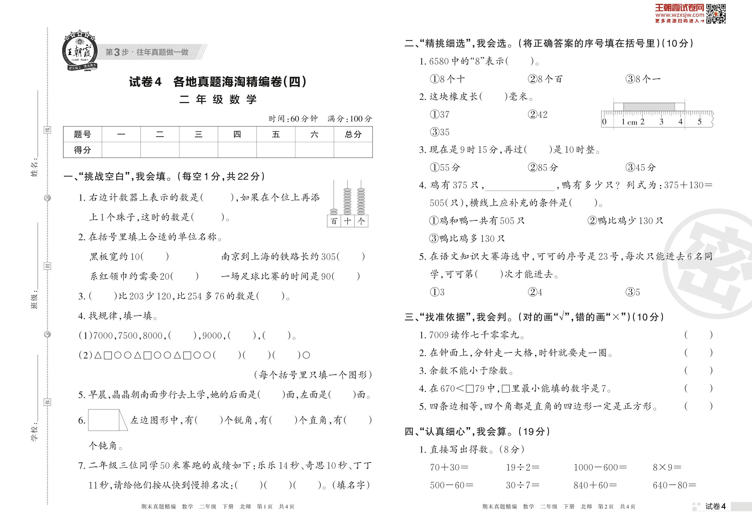 各地真题海淘精编卷(四)二年级下册数学(北师版)_R230419173445201【4】