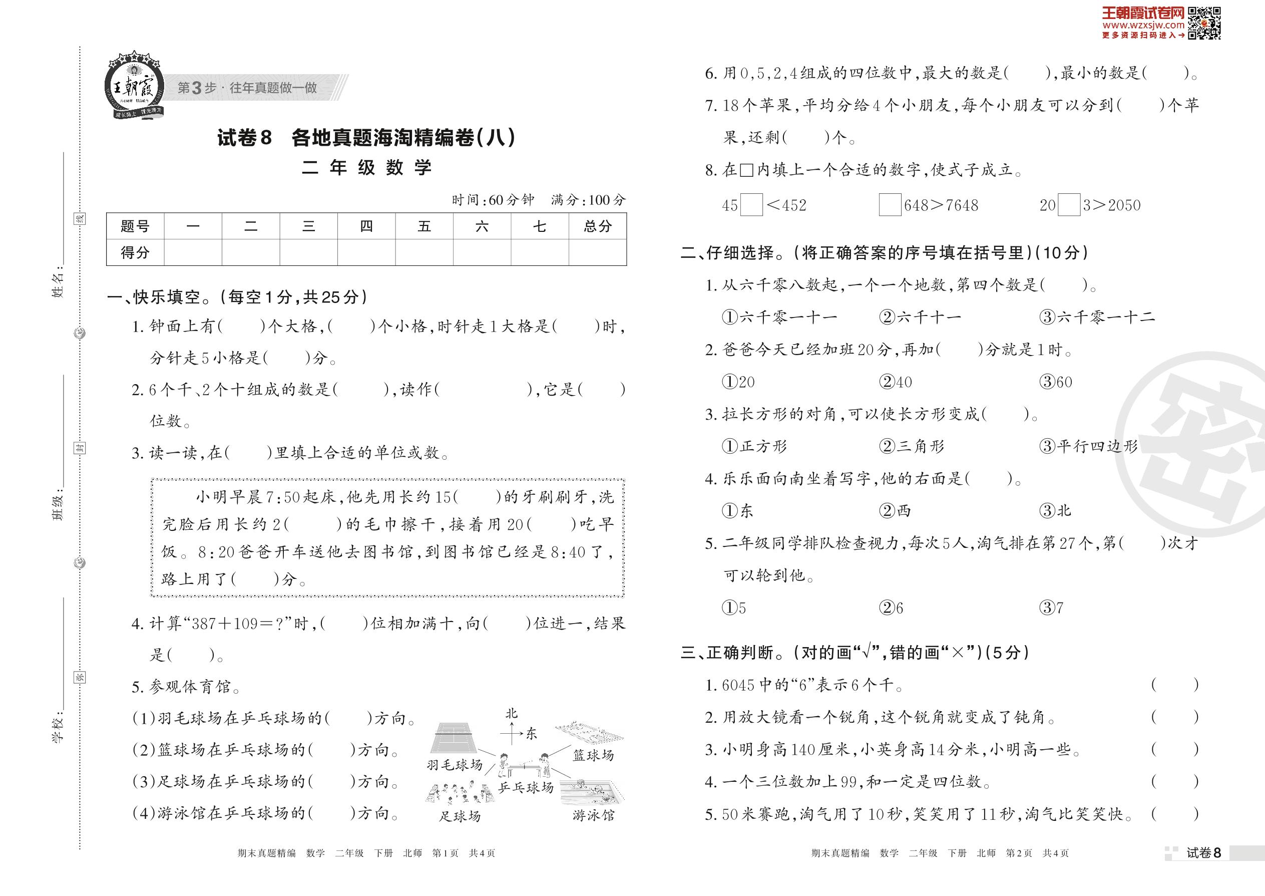 各地真题海淘精编卷(八)二年级下册数学(北师版)_R230419173445591【8】