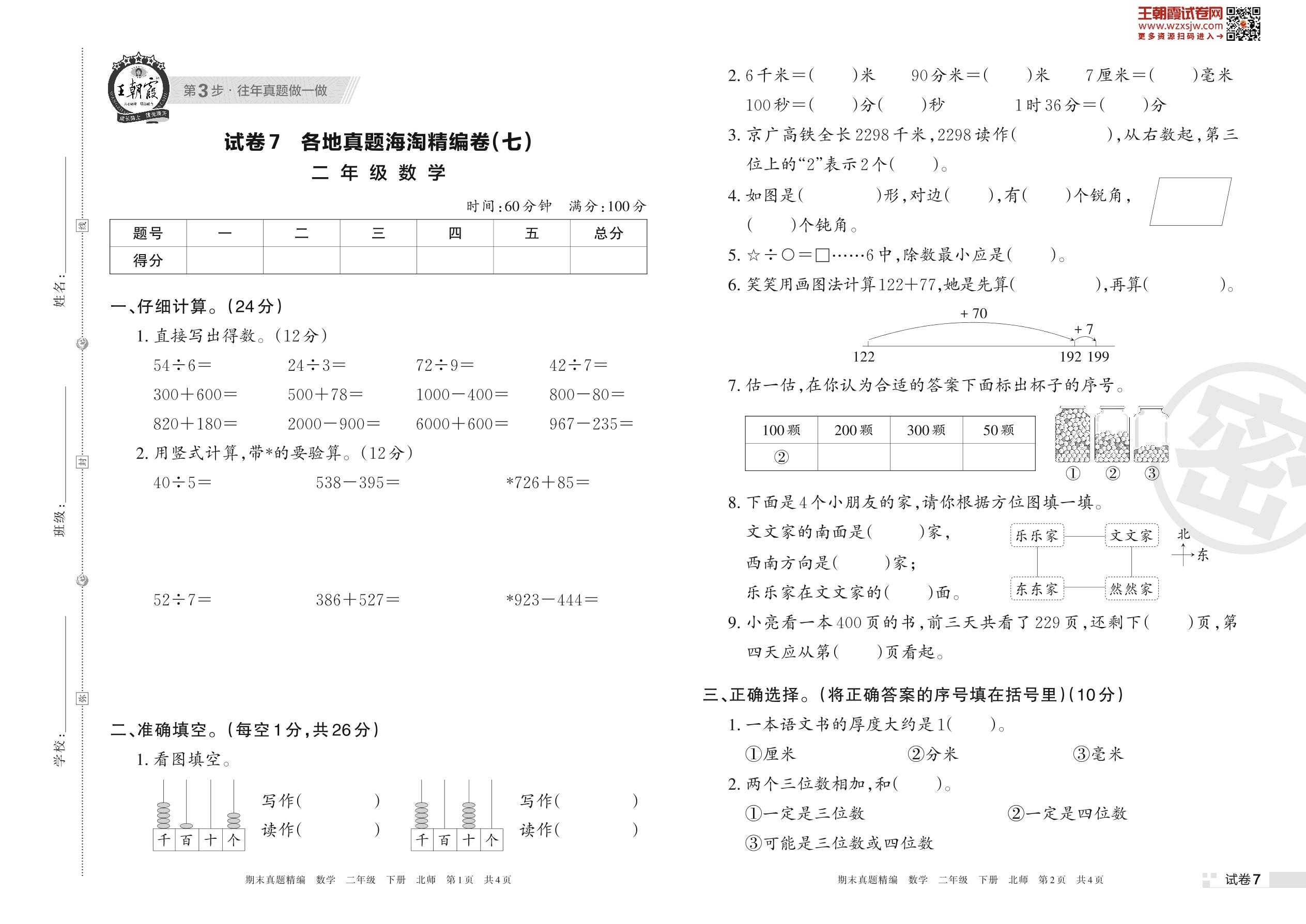 各地真题海淘精编卷(七)二年级下册数学(北师版)_R230419173445759【7】
