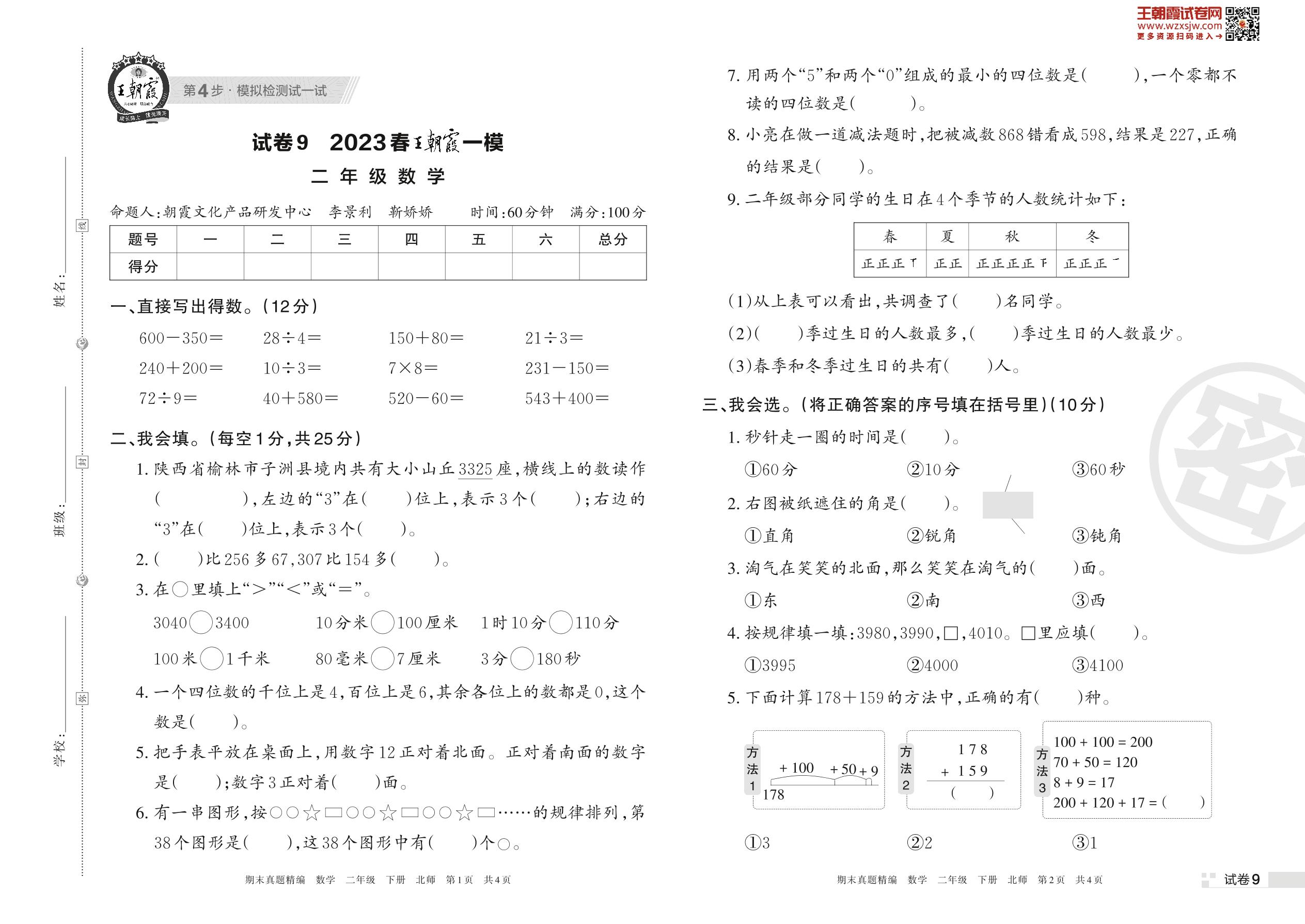 王朝霞期末模拟卷二年级下册数学(北师版)_R230419173445762【9】