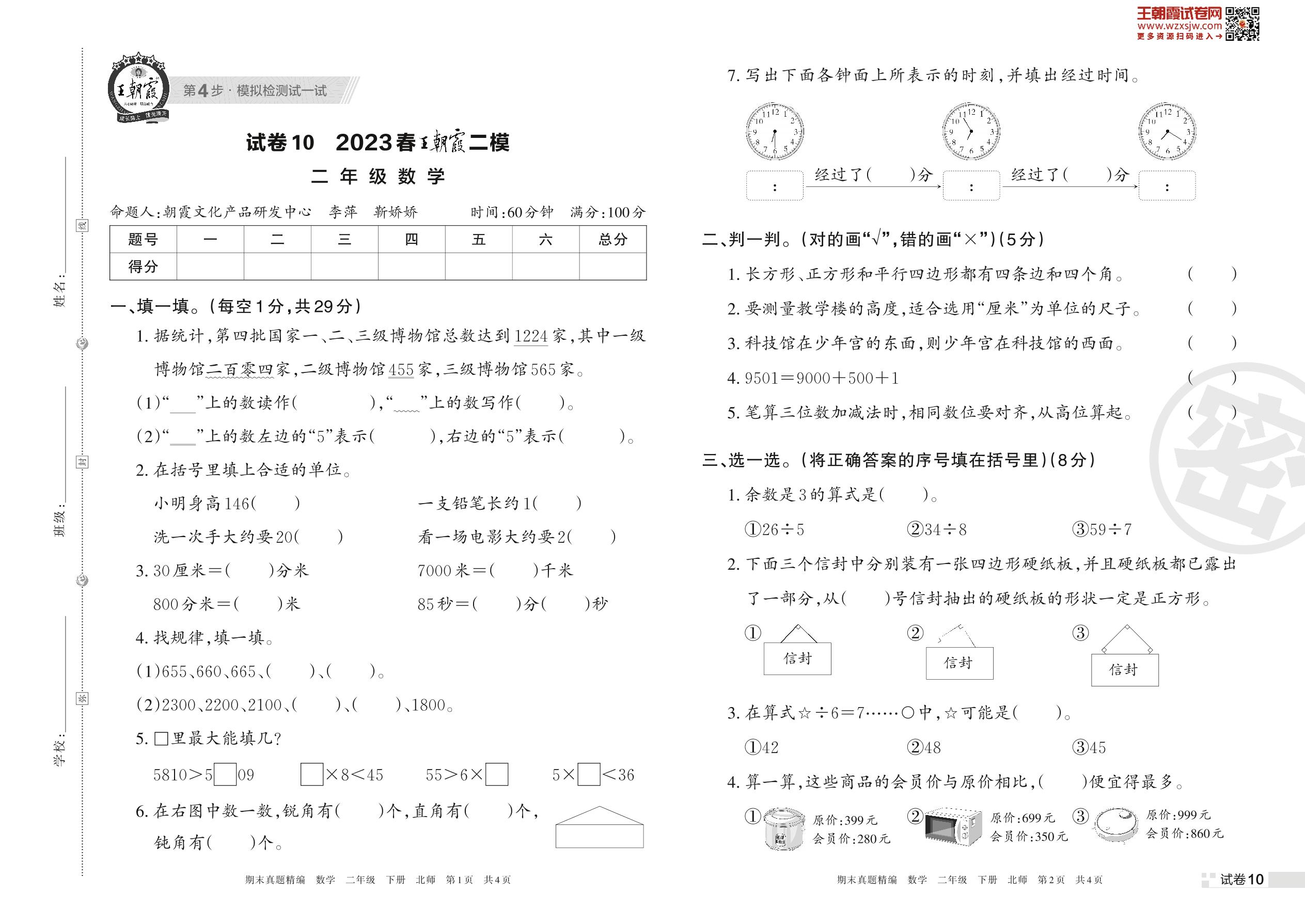 王朝霞期末模拟卷二年级下册数学(北师版)_R230419173446411【10】