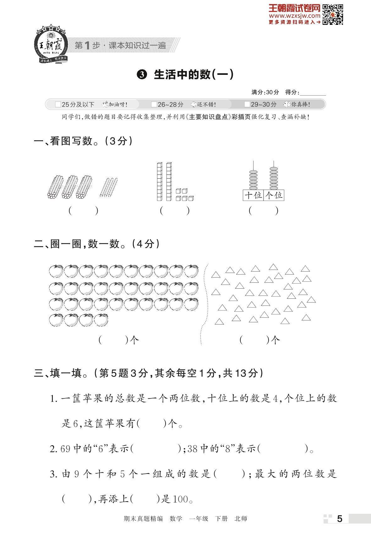 王朝霞期末过课本——3 生活中的数(一)一年级下册数学(北师版)_R230420105652887