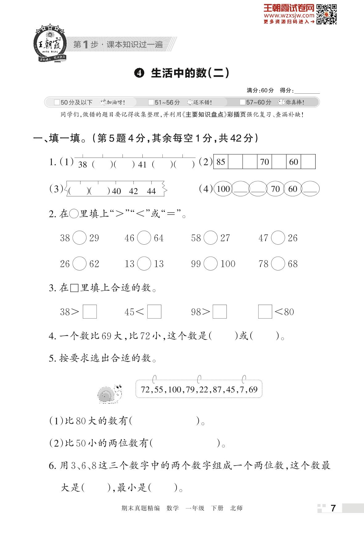 王朝霞期末过课本——4 生活中的数(二)一年级下册数学(北师版)_R230420105653094