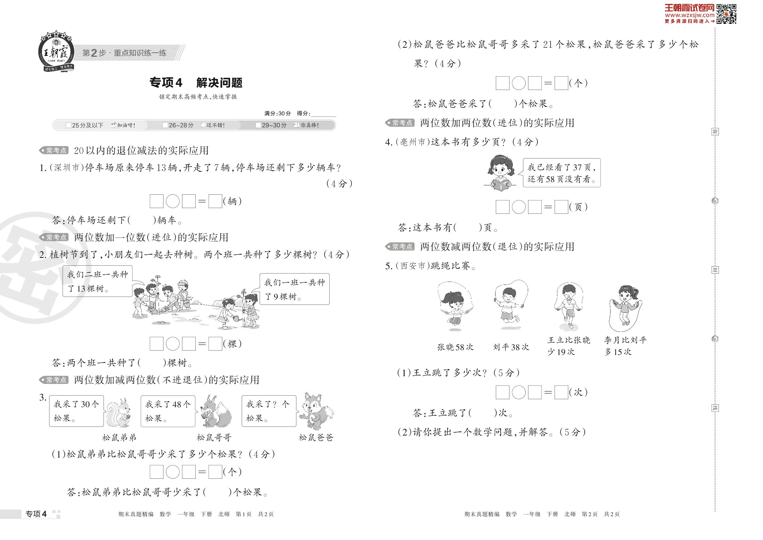 王朝霞期末专项卷——解决问题一年级下册数学(北师版)_R230420105653030【4】
