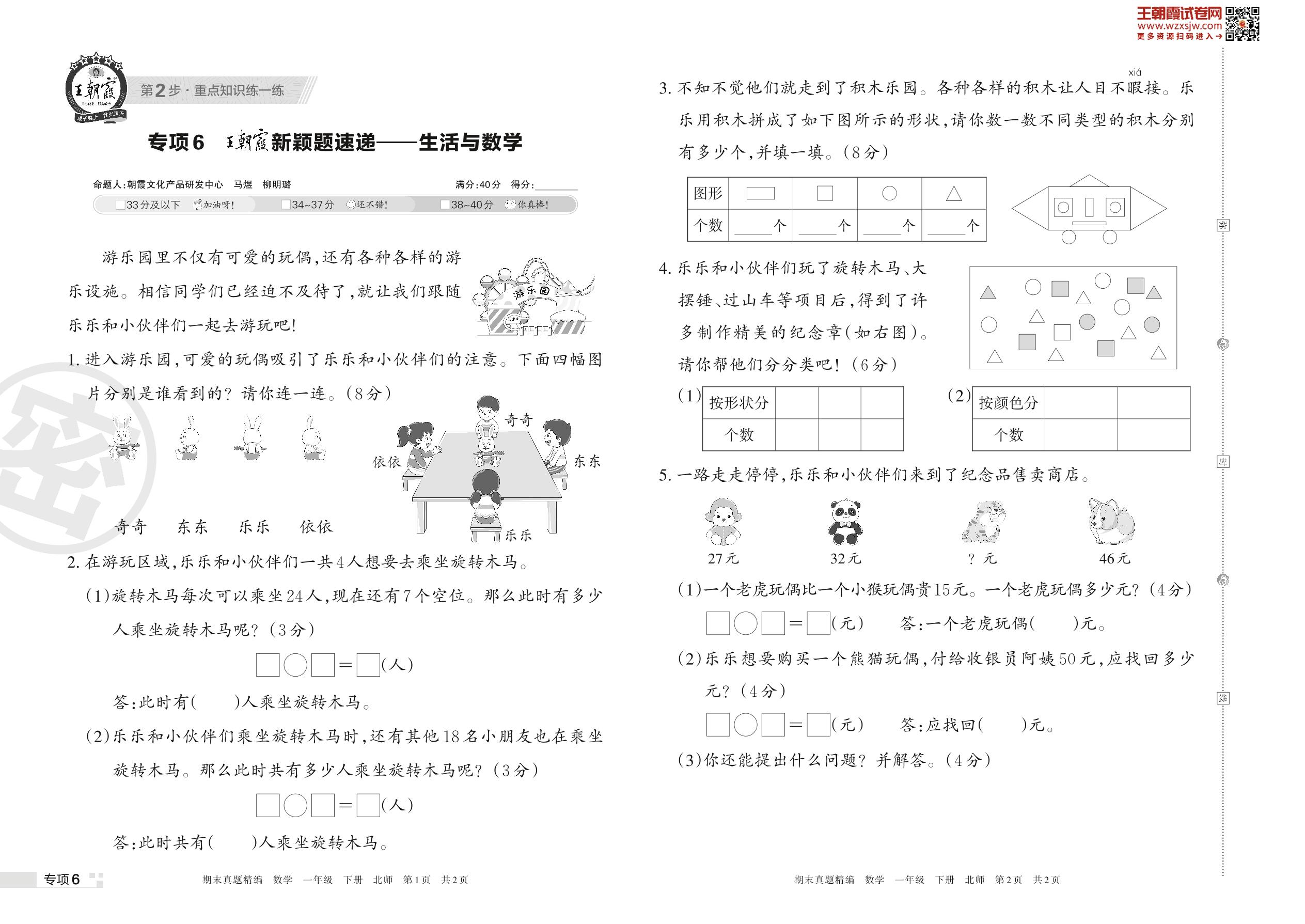 王朝霞期末专项卷——王朝霞新颖题速递:生活与数学一年级下册数学(北师版)_R230420105654734【6】